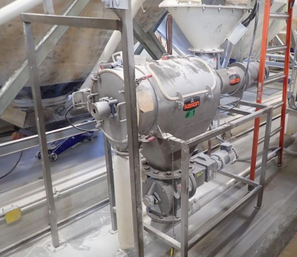 Kason,型号MOB-SS,连续式,不锈钢,离心式筛。配备18英寸长x 7英寸内径的筛室,带11英寸外径/6英寸内径法兰顶部产品装料,顶部和前部铰接螺栓下检修门,25英寸长x 10英寸外径可移动筛,叶片和螺钉,底部3½英寸内径排放,用于25英寸以下的产品“地板净空和底部3½”内径排放超大产品,地板净空为20”。由单电机驱动,具有启动、停止开关和急停按钮。安装在“H”型基架上。非常适合于产品的去团聚、去皮、分类和调节,使其尺寸均匀。
