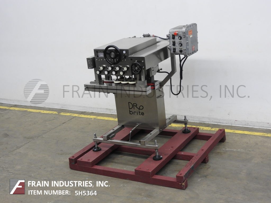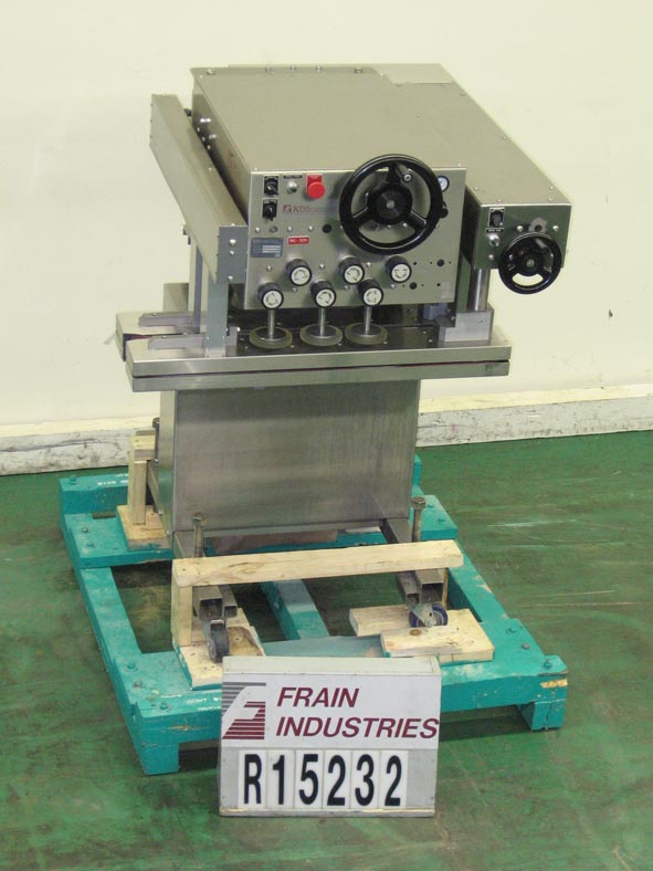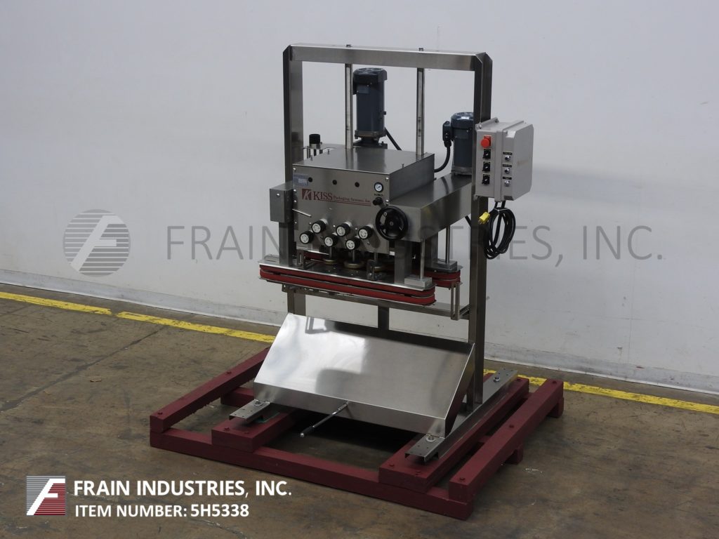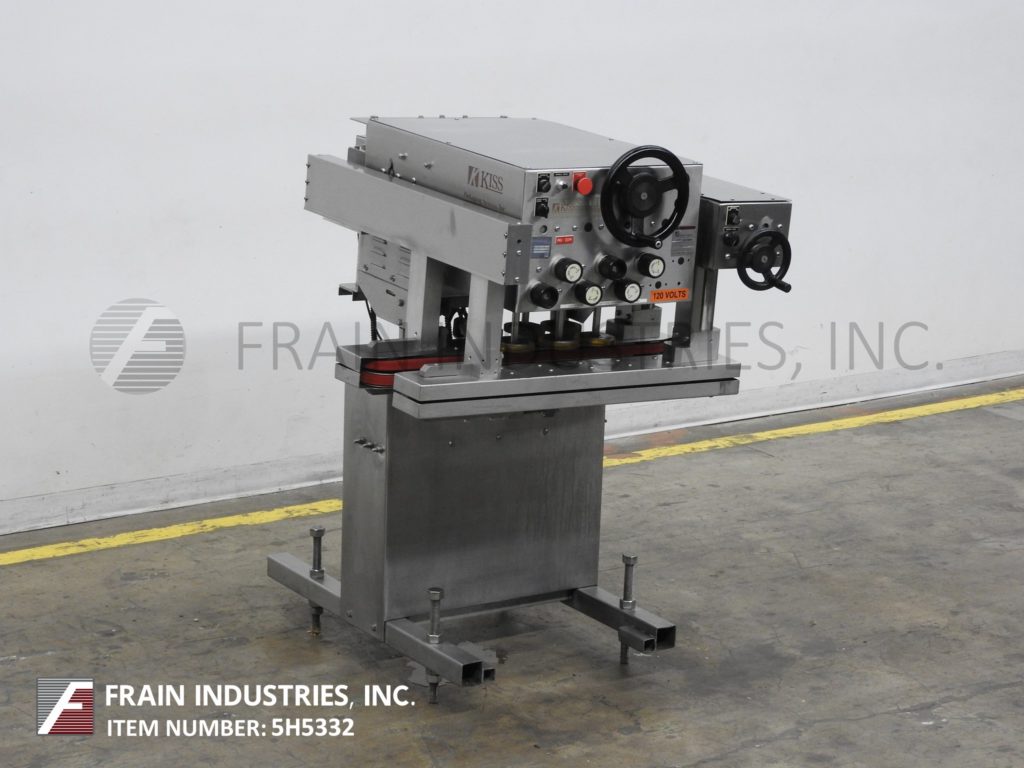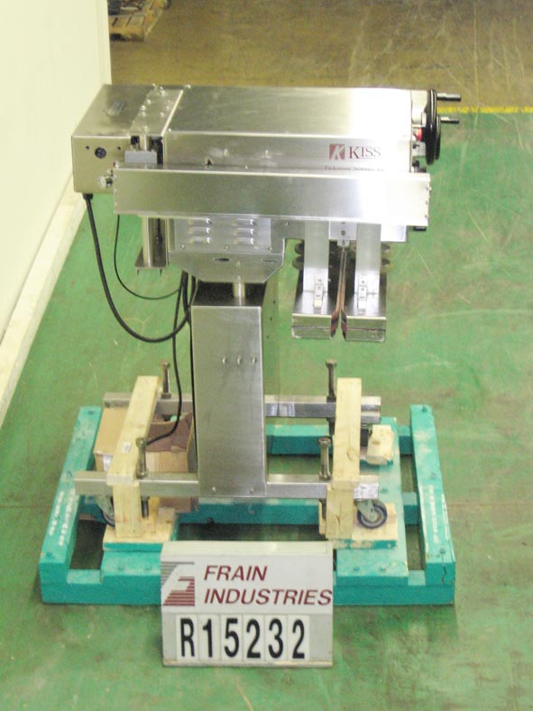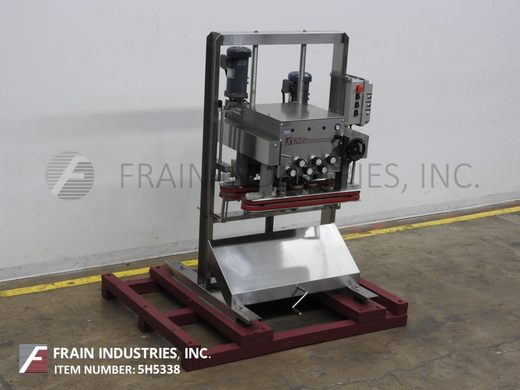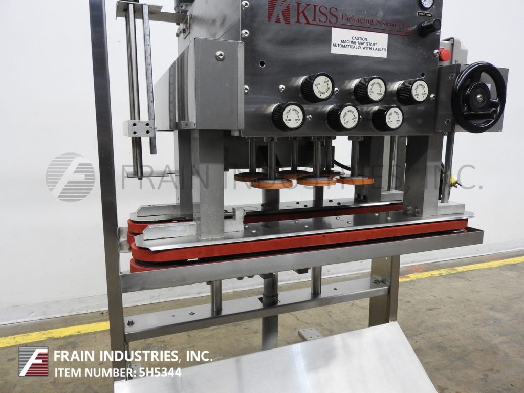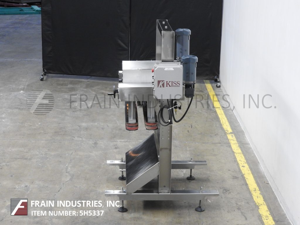 Kiss Packaging Model CTO8Exp,半自动,内联,3站,6个主轴不锈钢,每分钟容器上的数量的羽毛瓶盖 - 取决于材料和应用。配有3个站,6个主轴重型盖紧盖,空气离合器上一组主轴,用于一致扭矩。304抛光不锈钢底座和外壳,双夹具集装箱带。在封端头上的主轴和夹持带上的个人调整,电动高度调节。控制面板具有各种速度控制拨盘并启动,停止,电子停止按钮控件。安装在不锈钢基架上,带水平腿。
