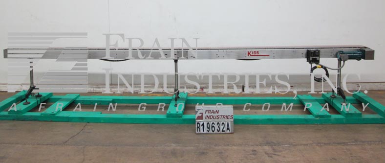 吻包装,240“长x 4”宽,德龙腰带,不锈钢输送机。配备1/2 HP驱动器和变速控制。安装在一个带有高度可调节腿的长轴钢框架上。