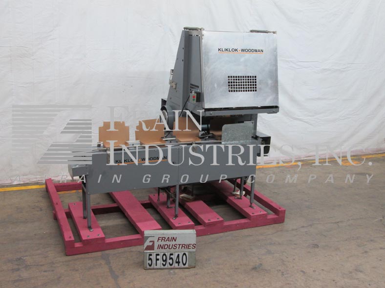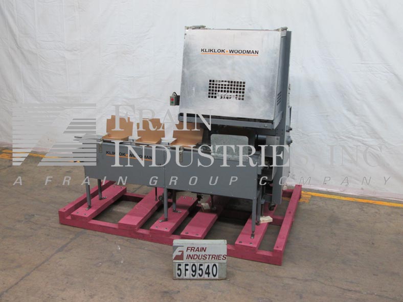Kliklock模型SR,自动单头,托盘成型塔克机器额定从5到40冲程每分钟-取决于材料和应用。托盘尺寸范围:5“到28”的长度;宽度4“至12”;13/16“到5.5”深度。配备24英寸长的空白托盘杂志,吸盘往复式位置,单头闸板小襟翼和大襟翼折叠犁,带引擎盖的密封区域与提升访问门,启动/停止按钮控制和安装在基础框架锁腿和脚轮。96"长单链拖式托盘输送机,1-1/4"高行李设置在18"中心76"长可操作的载荷区域和34"卸料高度的可调节滑道。
