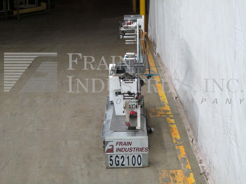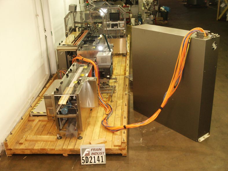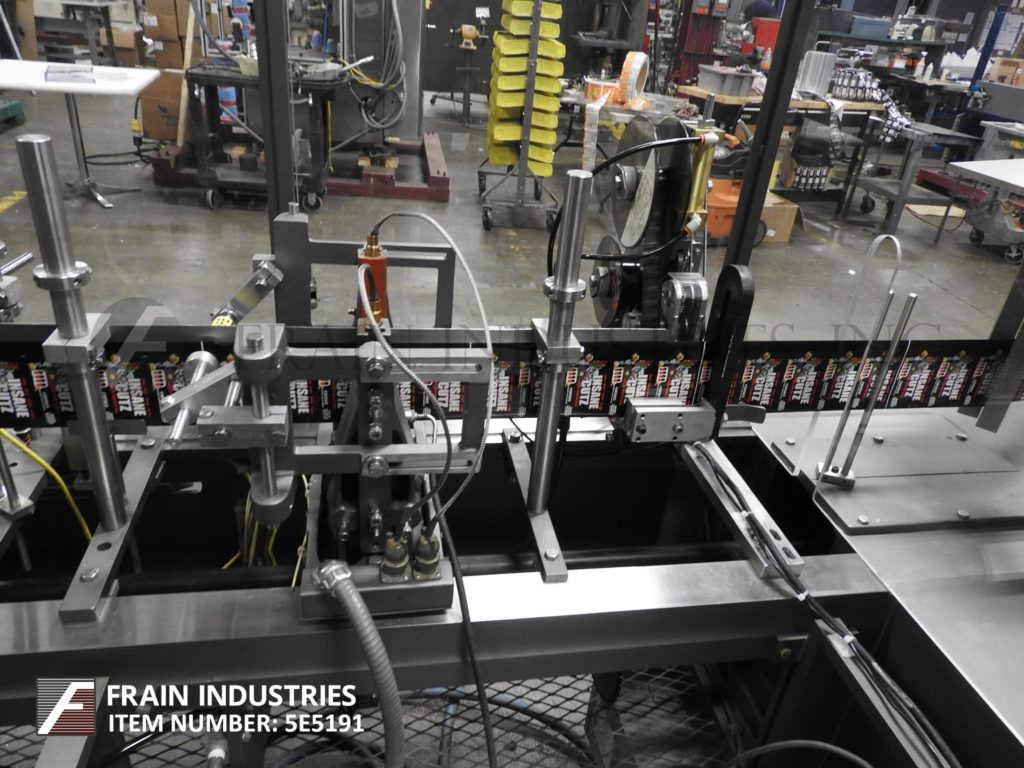 Klockner Bartelt,型号CMC 6,自动,水平,持续运动,热熔胶胶卷额定值50至400纸盒/分钟 - 取决于材料和应用。纸箱尺寸范围:1-1 / 2“至4-1 / 2”的长度;3/4"到3-1/2"宽度;深度为4-1 / 2“至9”。配备(3)链可调节套装在6英寸中心,1-1 / 2英寸宽x 2“高凸耳,216”长产品在饲料输送机中,3-1 / 4“长x 1-1 / 2”高x 7“深固定产品桶,36英寸长(3)链动力空白纸箱杂志,(2)头旋转式电压,无产品/禁止纸箱,桶凸轮装载机,Nordson Problue热熔胶和自我含有真空泵系统。控制面板具有主要,慢跑,运行,真空接通/关闭式/关闭开关,并启动,停止,电子停止按钮。用互锁安全门守卫和Statis光安装在重型基础框架上。