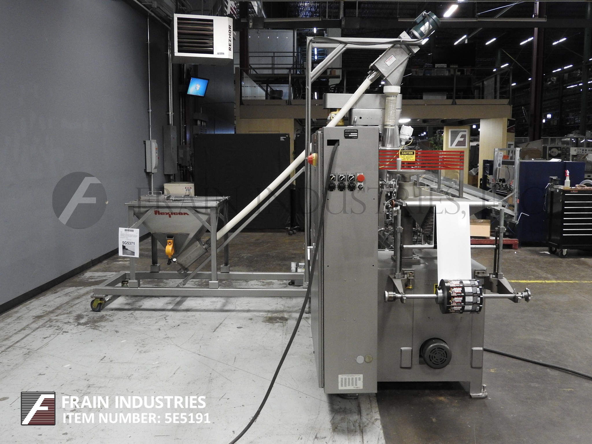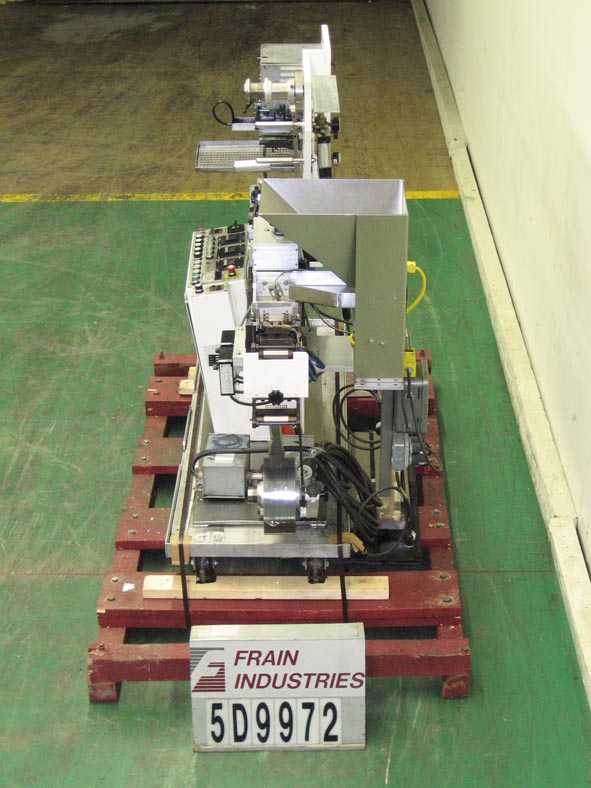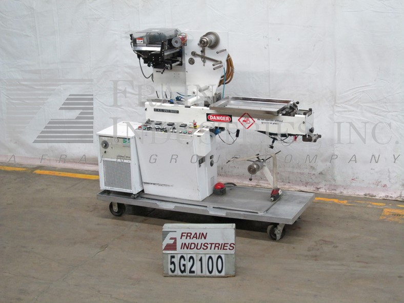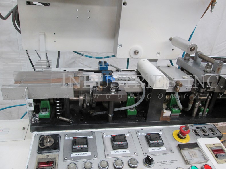自动,间歇运动,水平f/f/s速度可达100 ppm,取决于应用。袋大小范围:2”- 5 3/4“W x 2”- 9 1/2“H, 7日14站”中心,21个“L电影卷18“马克斯web宽度和3”ID核心,可形成犁,张力膜辊,一个侧密封,截止,皮卡,和袋夹电台,没有袋检测、电影登记、双真空吸盘袋机,灌装机,顶部密封清洁,通货紧缩,和顶部密封站,带有双真空吸杯摘出排放。Klockner PLS触摸垫控制器与数字读数,A/B SLC PLC和AC Tech变速驱动器,和Watlow侧和顶部密封热控制器。