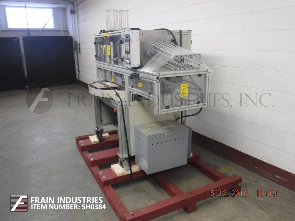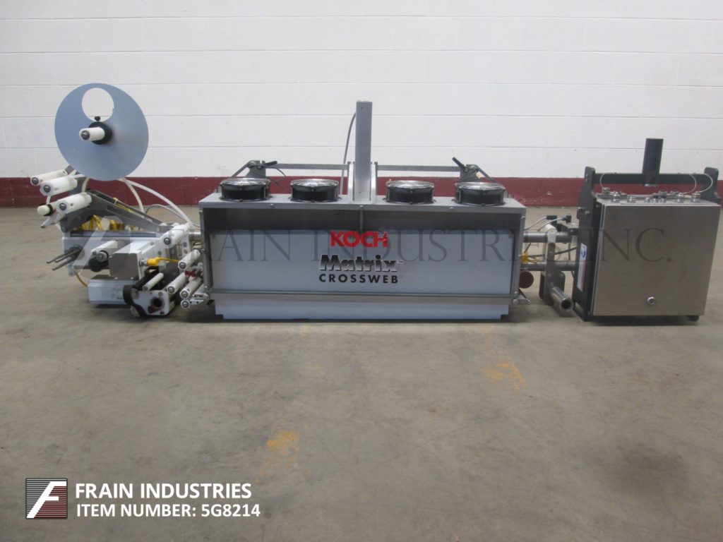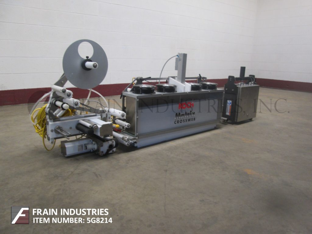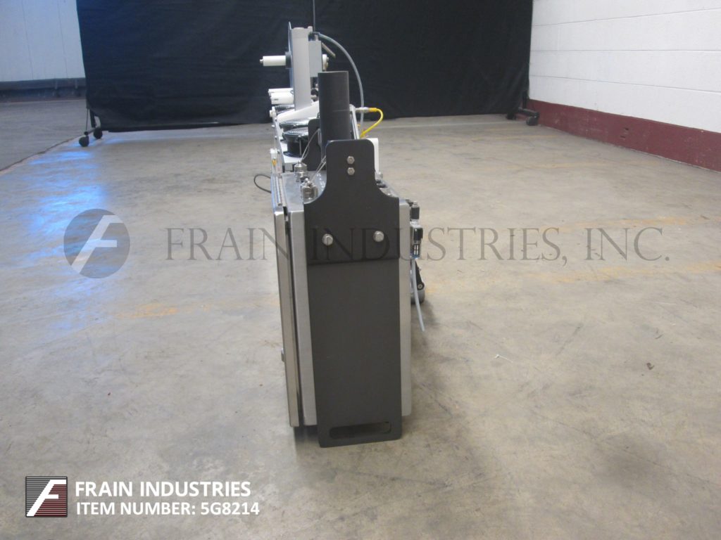 科赫,型号PR99-11520-002,跨网薄膜标签。自动应用压敏标签垂直于机器生产流程跨越多个车道。能够运行最大标签20mm(0.78“)至150mm(5.9“)宽x 20mm(0.78“)至400mm(15.74“)长,速度从30至190英尺/分钟,精度±0.5mm -取决于材料,应用和机器配置。标签辊规格:14“外径辊1½”核心。配备了一个超级扭矩步进驱动器,6英寸宽的雨刷板,42英寸长(11)皮带底盘,36英寸长× 2½英寸宽夯实板,并允许24英寸的纵向旅行。包括一个触摸屏控制器,并被设计用于安装在大多数包装机的放电部分。