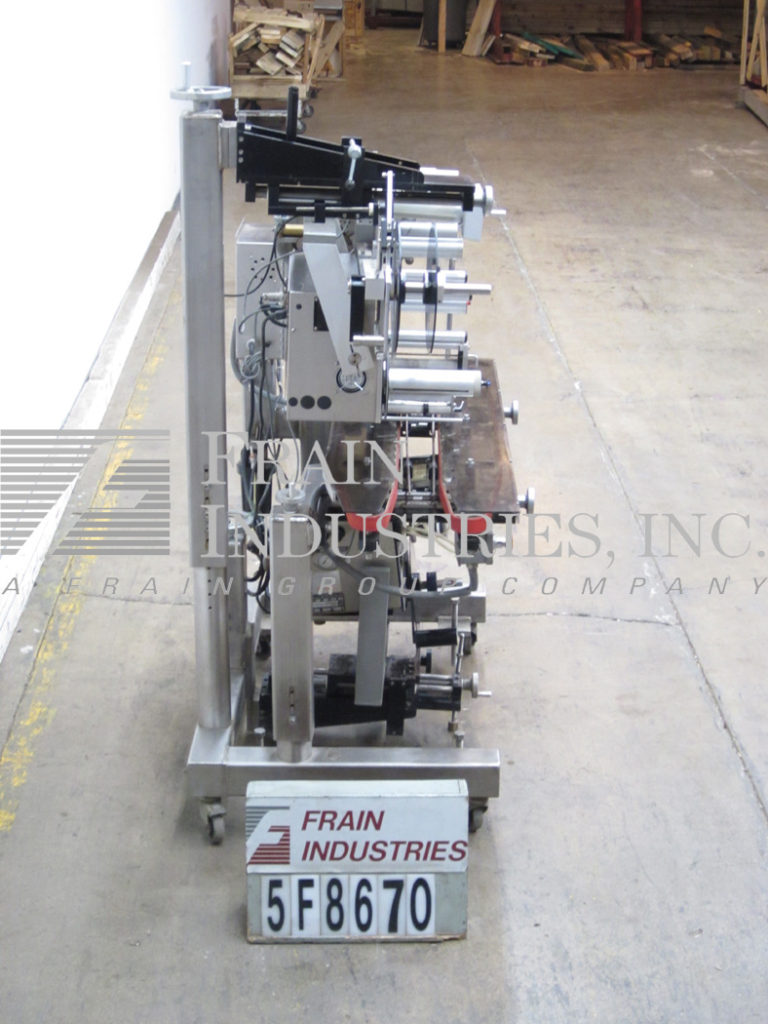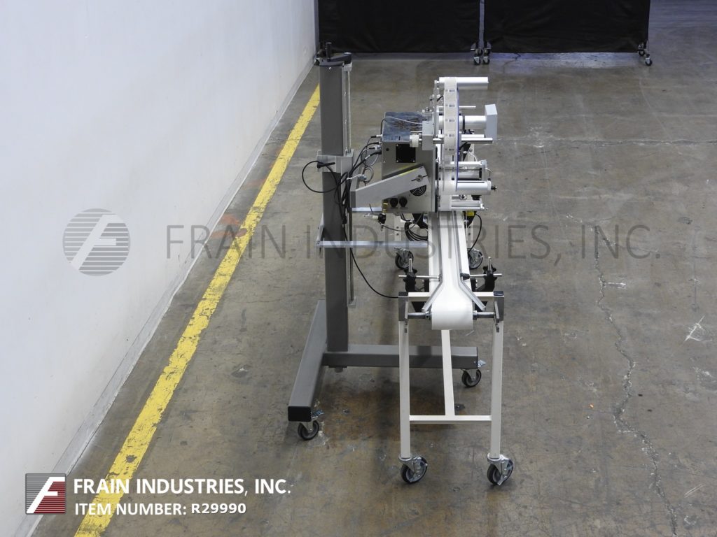 标签 - 艾尔公司型号3111,自动压敏贴标包装。从500" 到1500" 每分钟的速度用标签和包装件数 - 这取决于材料,应用和设备配置。配备有标签的AIRE型号3111标签头并且具有一个标签尺寸范围:在宽度3/4" 到4" ;在精确长度3/4" 至5" :+ / - 1/32" 。与触摸垫控制和读出96" 长×7" 宽的Quadro产物辊式输送机,具有1/3马力电机驱动和1-3 /4" 宽包裹带。的OD芯和9" OD 1" OD芯和4.13" 。控制面板的最大卷筒纸宽度最大标签重绕辊16" 上2-1 / 2" OD最大标签辊具有主电源和输送机的开/关开关保鲜膜带和传送带速度控制拨号,开始,停止和急停按钮与统计的光棒。安装在高度可调的“T”型支架具有锁定脚轮和调平脚。
