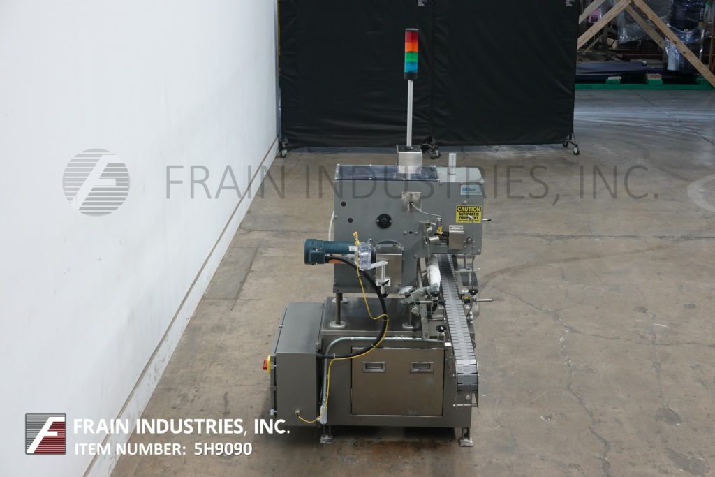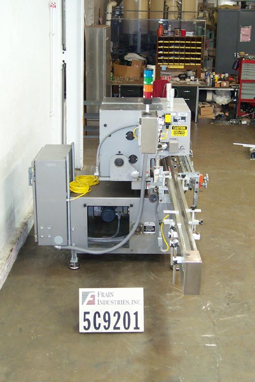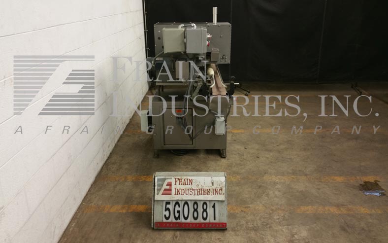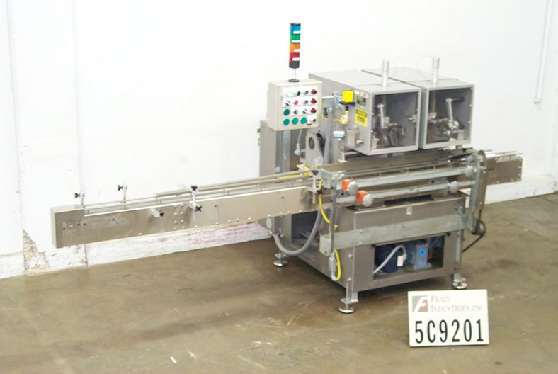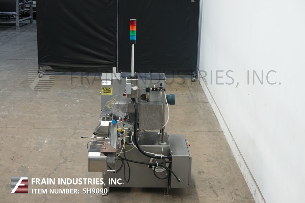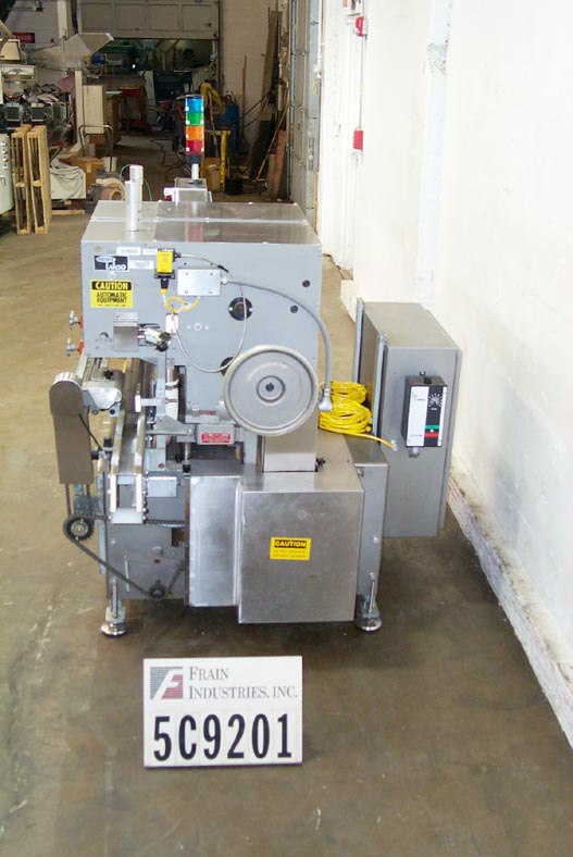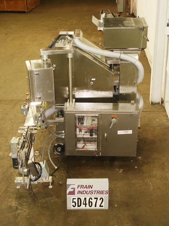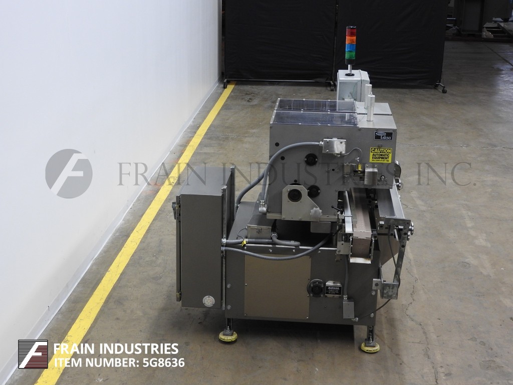 Lakso Model 150,自动,单头,内联倒置“U”棉插进速度取决于材料和应用。棉尺寸范围:2-1 / 2“至7”,集装箱颈部尺寸:1/2“至2”直径。具有适当的改变零件。材料重量:高达26克每码。配备4½宽的x 68“长达德里林带式输送机,集装箱高度调节,刀切断,蜗杆螺丝装配集装箱处理。互锁安全门。控制面板有电源,慢跑,输送机开关,带有速度控制拨盘,启动/ e-stop按钮和vari速度控制器,安装在安装在现有输送机上的高度可调底框架上。