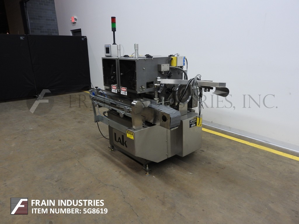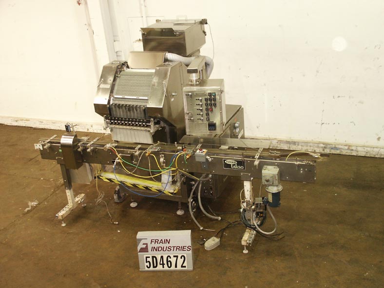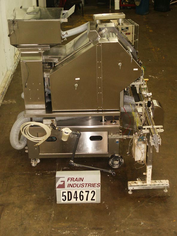 Lakso,Model 990,内联,板条平板电脑和胶囊柜台/填充物。100计数每分钟40至240瓶,取决于材料和应用。不锈钢和收缩铝结构。配备200“长x3¼”宽集装箱输送机,配有57“长虫螺丝容器分级器,72套42英寸宽板,旋转架空刷,旋转真空刷除尘系统,静电拆卸,漏斗与分频器滑槽和微扫描检查。控制面板具有A / B控制器。安装在不锈钢底架上