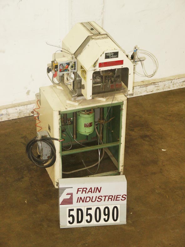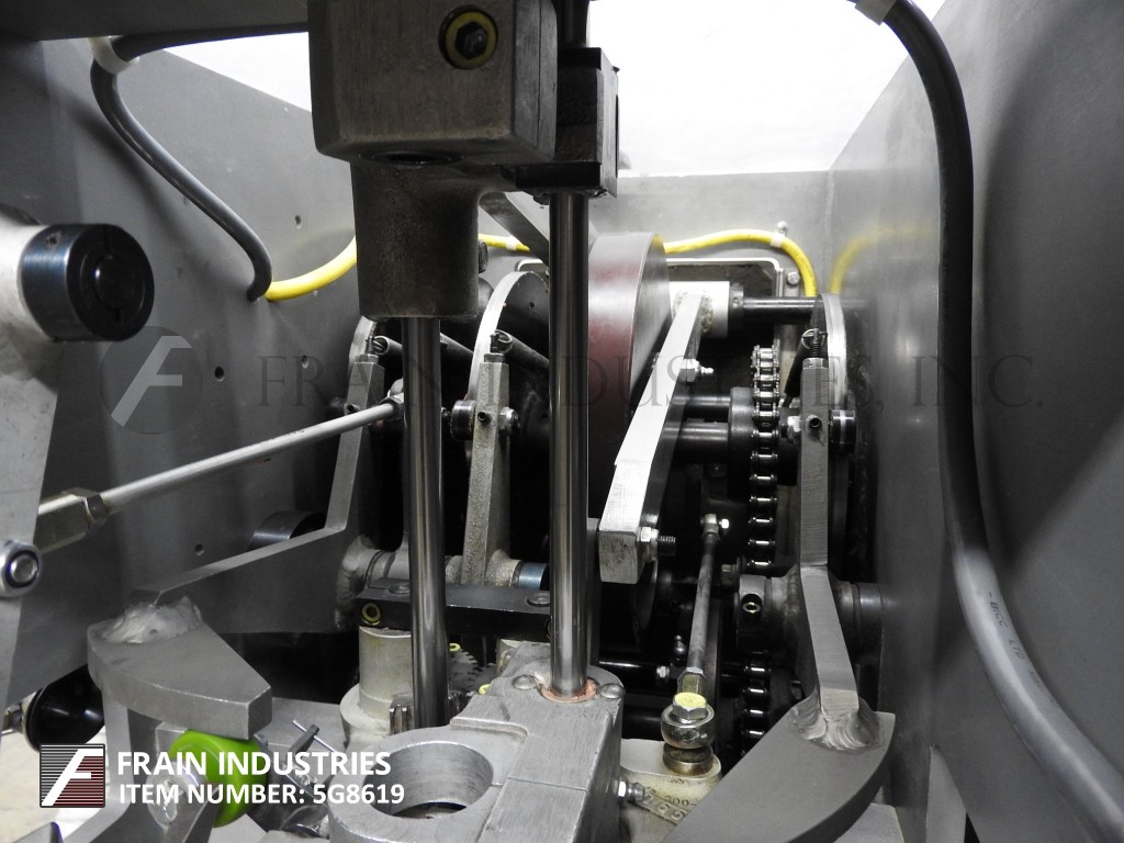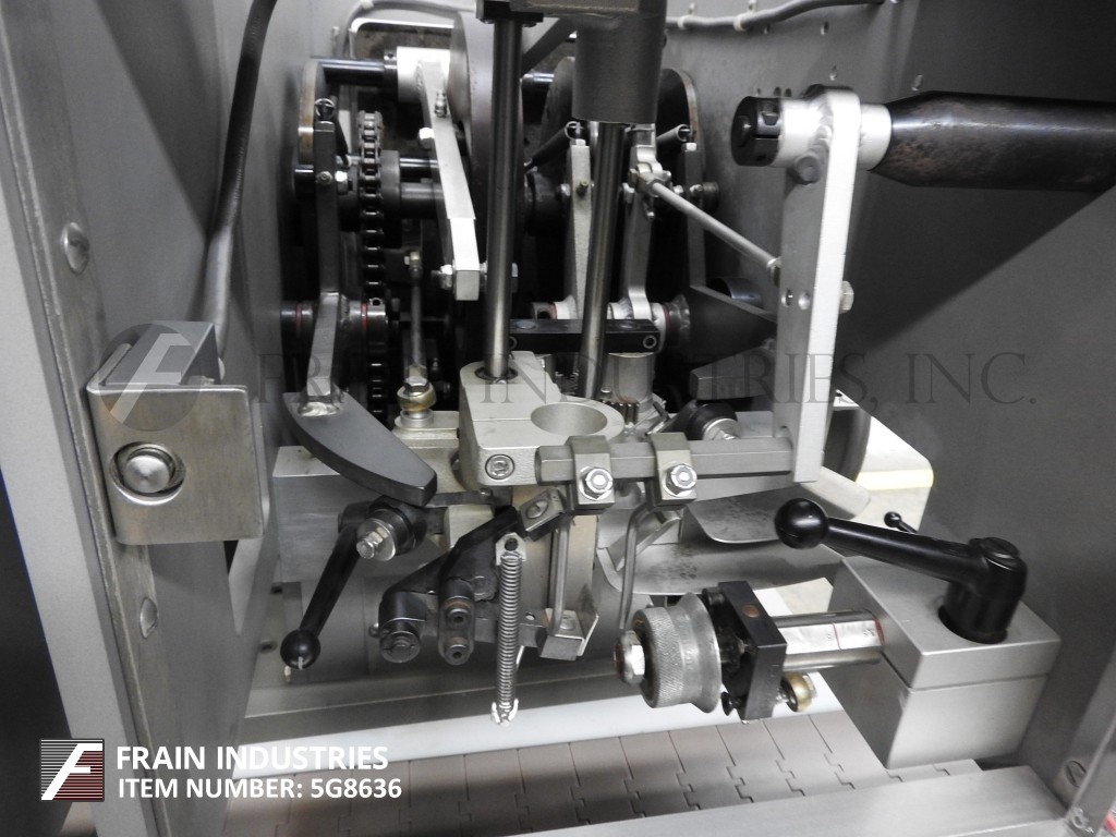 Lakso Model 52,全自动内联水编,每分钟10到100个容器 - 取决于材料和应用。集装箱颈部尺寸:直径1/2“至2”。棉尺寸范围:长度为2-1 / 2“至7” - 无论是适当的变化部件。材料重量:高达26克每码。配备容器高度,产品传感器和气动门控系统的调整。滚过现有输送机。