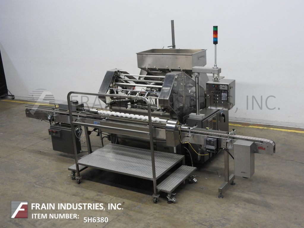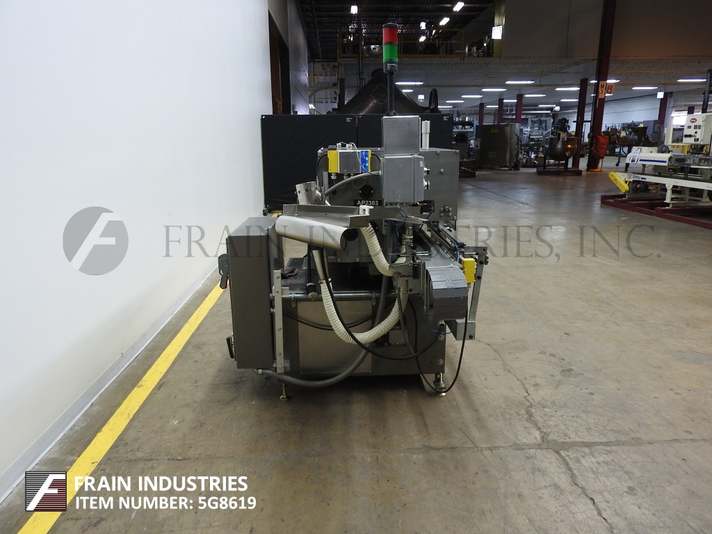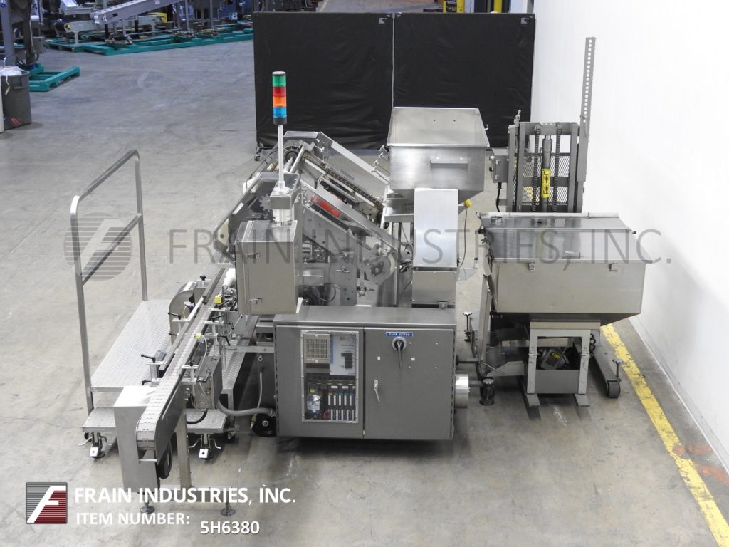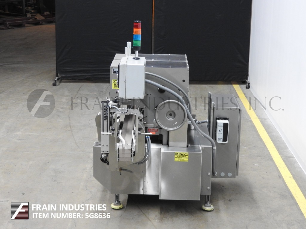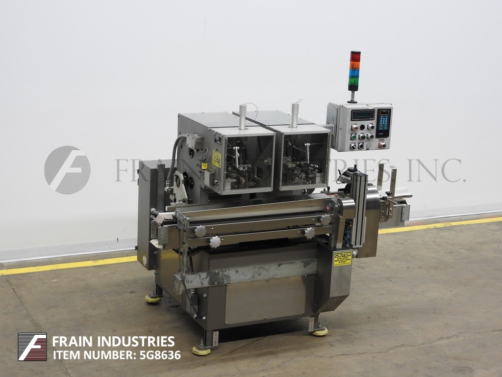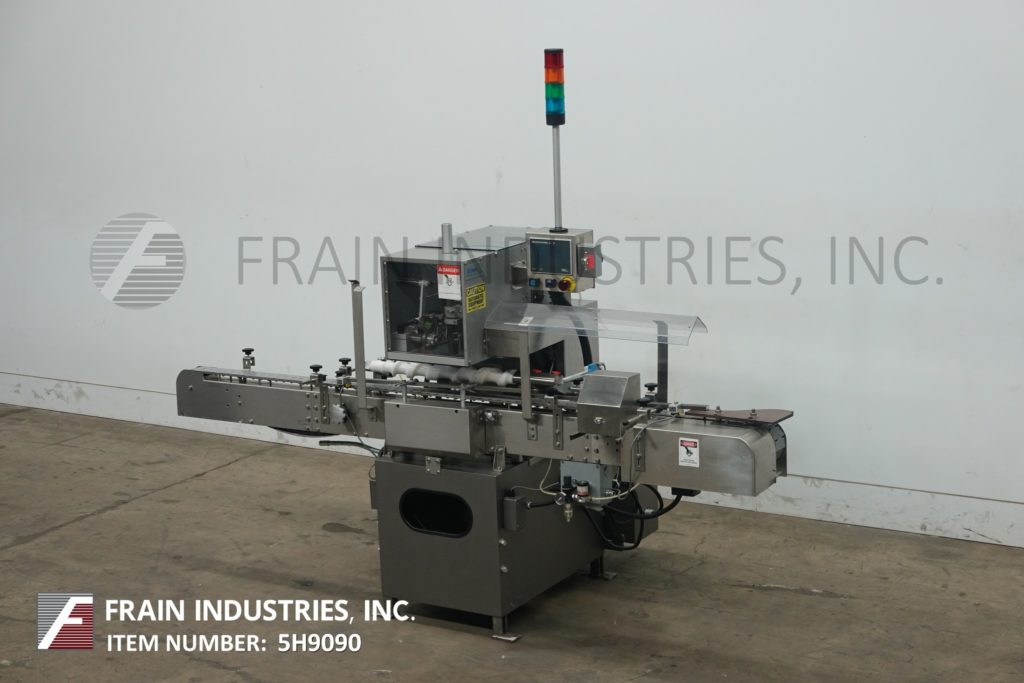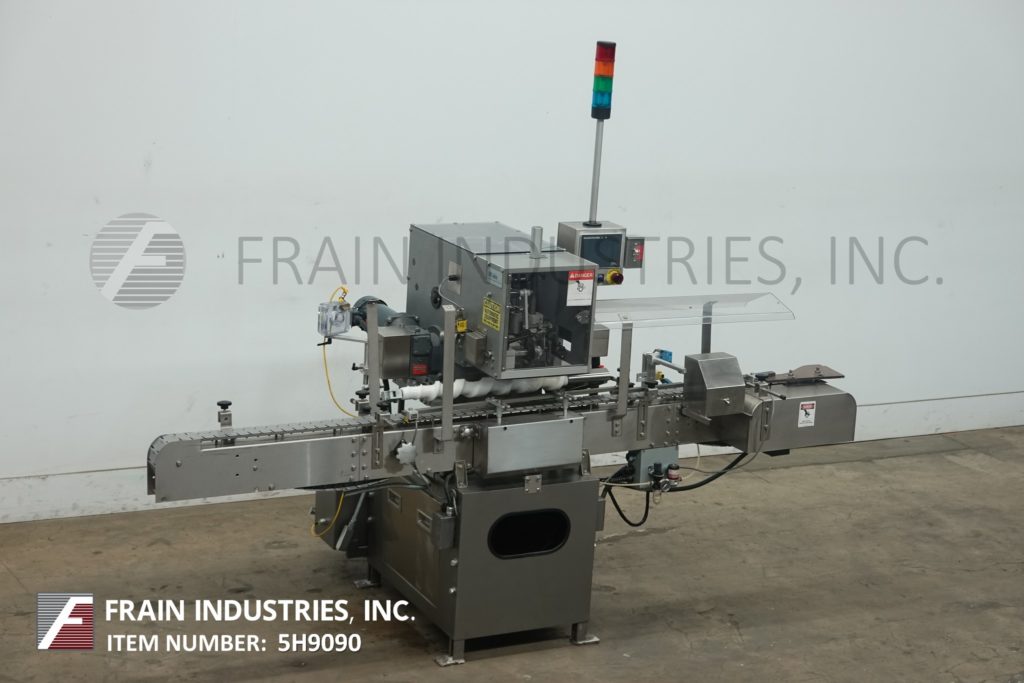 Lakso 150型,自动,在线,不锈钢,单头插棉机额定为每分钟150个容器-取决于材料,应用和蜗杆进给。棉花尺寸范围:长度2"至7"。材料重量:高达26克每码。瓶径范围:38mm至115mm瓶高范围:41mm至228mm(可适当更换部件)采用98“长× 3¼”宽delrin皮带,可调节导轨,蜗杆集装箱分度和集装箱高度可调,倒“U”插棉刀和切断刀。没有棉花传感器眼和空气排斥。控制面板采用A/B PLC控制器,触摸屏HMI,统计灯条和自动停车。安装在不锈钢框架上,带有安全防护和调平支架。