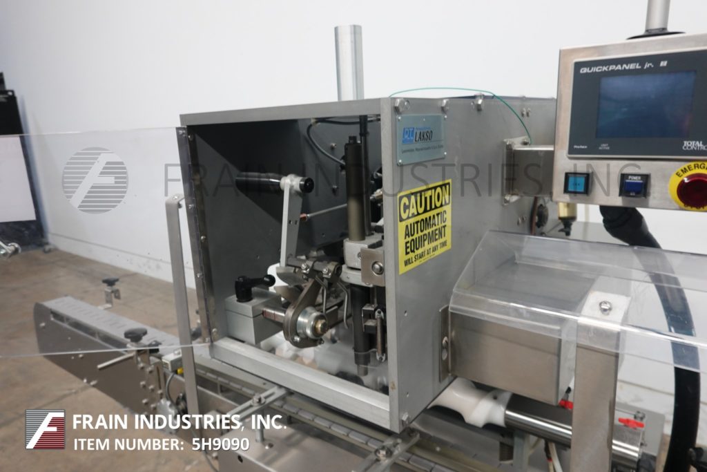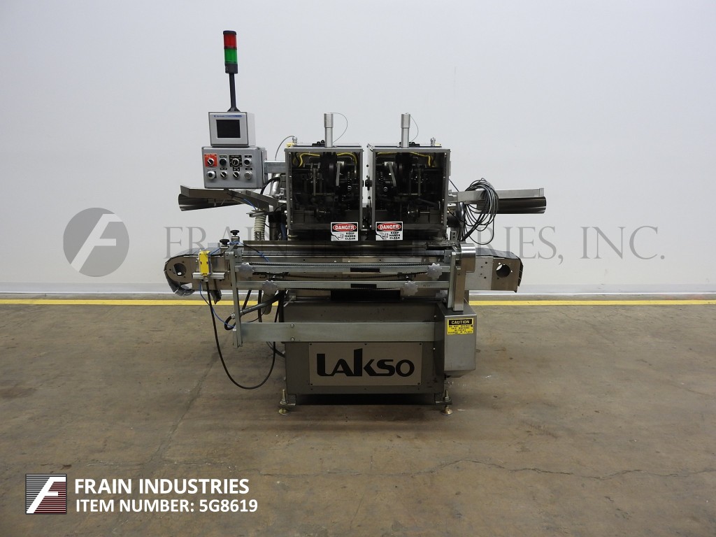 Lakso,型号300,自动,内联,不锈钢,双头,棉插进。每分钟25到300个容器 - 取决于材料,应用和机器配置。最大棉重量范围为26克,每码25〜7英寸,每瓶(以½速度为1/2)。配备5英寸宽x 64“的长传送车。控制面板带AB PanelView加600触摸屏显示,变速控制,启动,停止,e-STOP按钮控制和状态灯条。安装在不锈钢高度可调底座上。