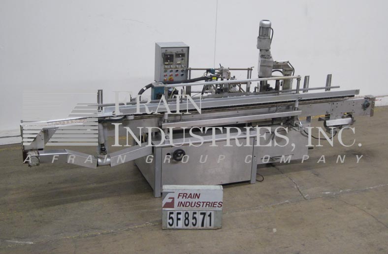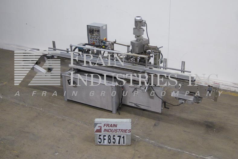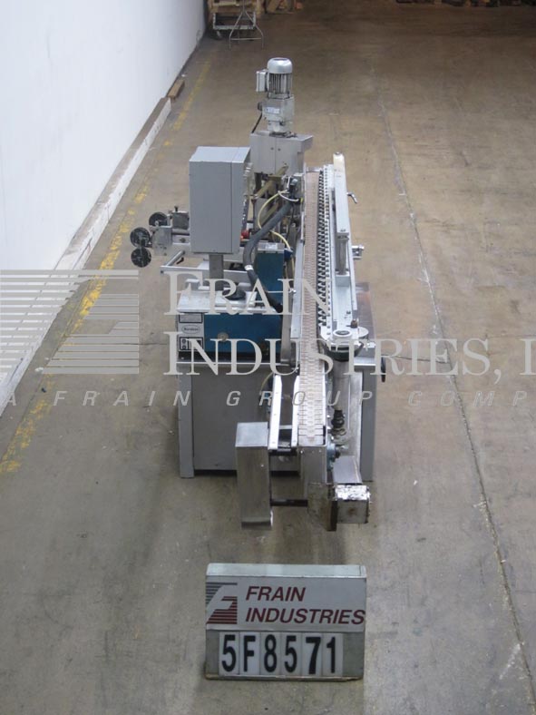 Langguth型E40,自动,内联,不锈钢,高速,全包,热熔胶贴贴图。每分钟100到600个圆柱形容器 - 取决于材料和应用容器尺寸范围:2英寸至6英寸直径,2英寸至9英寸“高。标签尺寸范围:8½“至21¼”长,1½“至9¼”高。矩形纸或塑料标签。配有3英寸“宽X 164”长Delron不锈钢产品输送机,带卷筒,侧标签杂志和Nordson Hot Melt胶水系统。控制面板带有开/关控制的Helt熔体,输送机和星形轮。安装在重型不锈钢框架上。