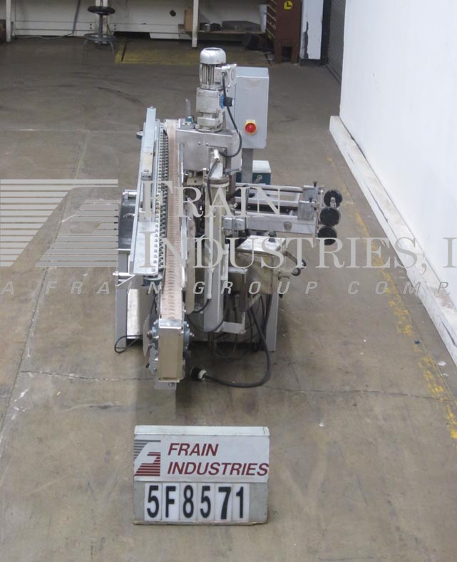 Langguth型E-62,12 HD旋转,不锈钢,切割和堆叠,环绕,热熔胶贴图仪设计,旨在涂抹全部或部分包装,以及景点标签到容器,每分钟50到300个容器 - 取决于材料和应用。集装箱尺寸范围:2.28英寸至4.4直径,标签尺寸范围:7.6“至17.2”的长度,高度1“至9.4”,能够跑圆形,椭圆形,矩形容器的玻璃,塑料和金属,两者完全或空,具有适当的变化零件。配备22“长剪切纸堆栈标签杂志,旋转(12)袋容器搬运圆盘,以蜗杆拧到饲料和放电的星轮,用88”长x 3“宽到机器塑料Delron Container皮带输送机,带18“OD旋转炮塔和(12)5”OD基座风格集装箱站,设置在4“中心,标签削皮胶板,带Nordson热熔胶单元和擦拭刷压缩部分。控制面板具有PLC控制器,带开/关标签饲料和关闭/自动涂抹胶水,流门打开/关闭机器速度/温度控制器,启动,停止,电子停止按钮与机器运行灯。安装在不锈钢框架上,互锁安全防护。