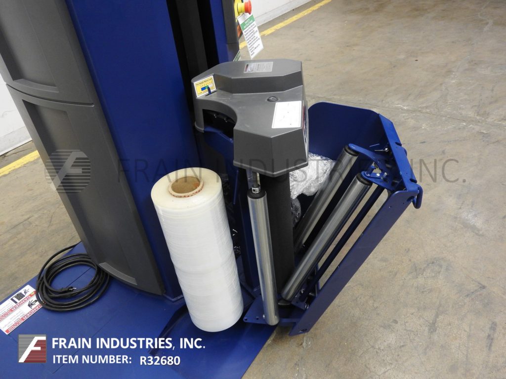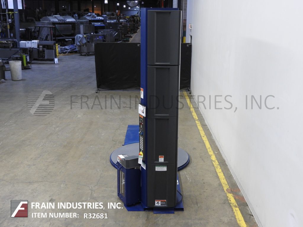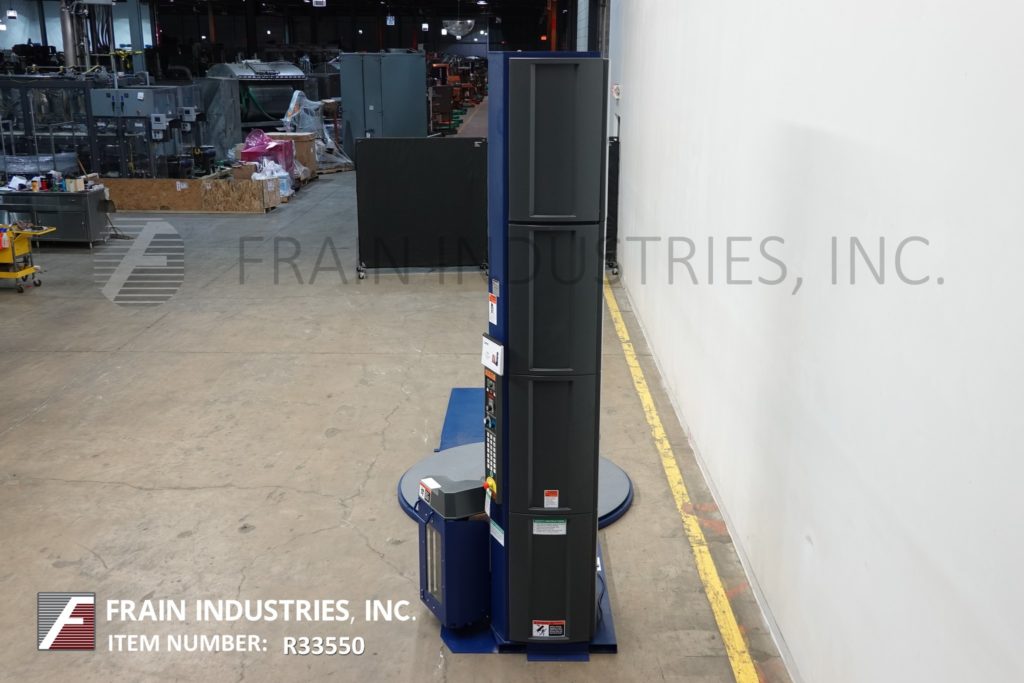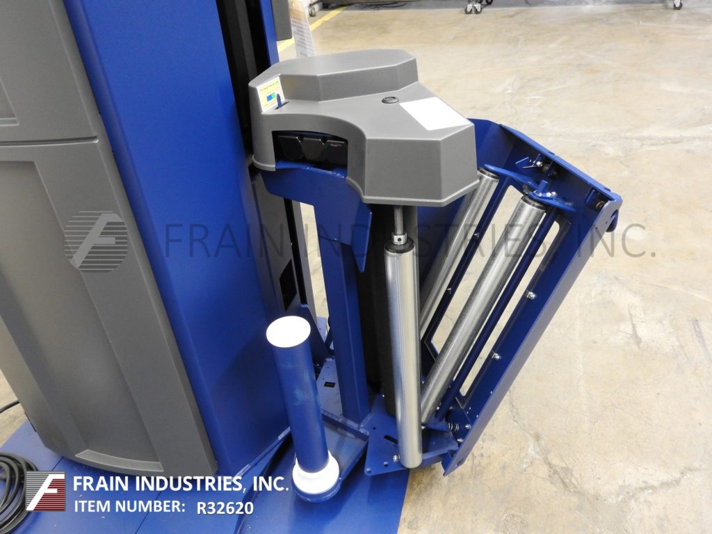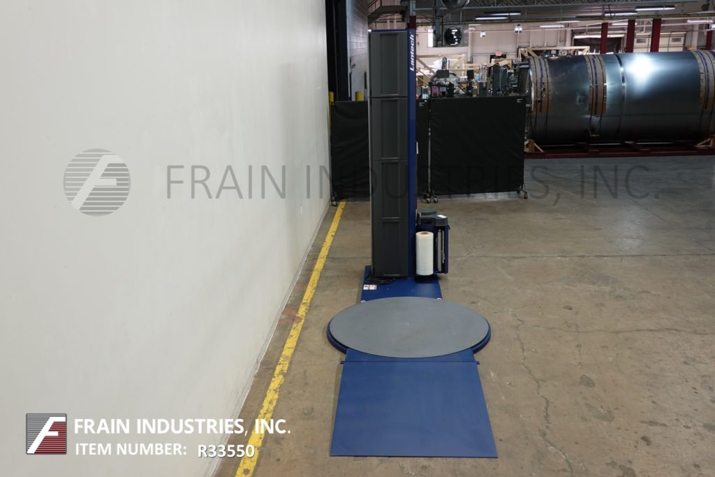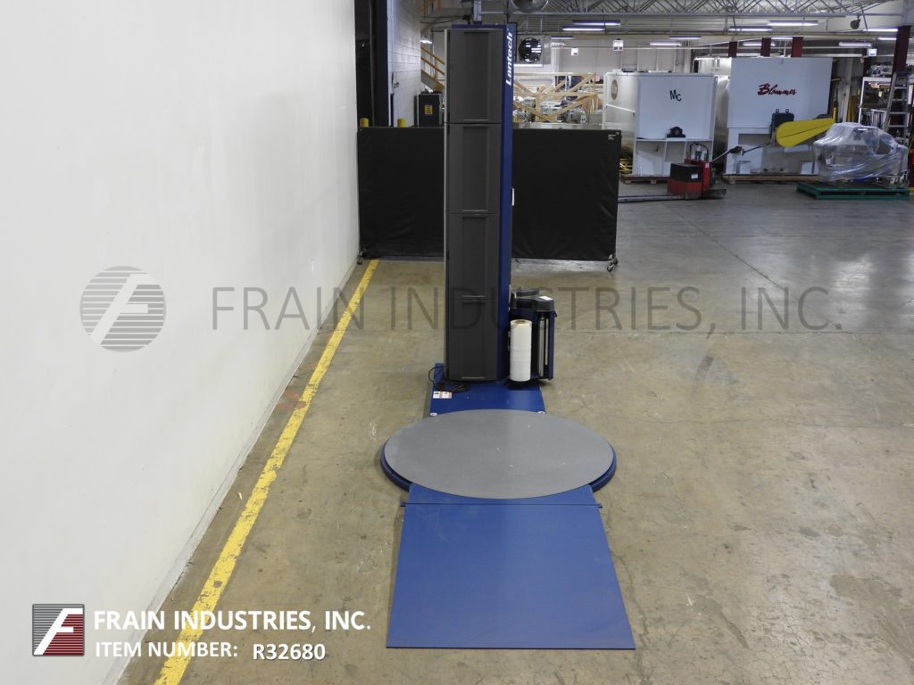 Lantech, Q1000型,自动,柱式拉伸包装机。额定负载为每小时10至45 -取决于材料,应用,环境和机器配置。可以处理36"至54"长度的负载;宽度36"至48";24"至130"高度,最大载重量4000磅。配备80"直径辊子转盘52"长x 2½"外径辊子设置在4"中心1½"间隙,辊子架E-Z螺纹20"宽x 10"外径薄膜辊,热刀切断,擦拭站和笼式安全防护。柱安装的控制面板与包装力,转盘和滚轮马车速度控制刻度盘,与启动和e-stop按钮。(2) 5 '段动力在进料和出料辊输送机52"长x 2½"外径辊设置在4"中心1½"间隙。