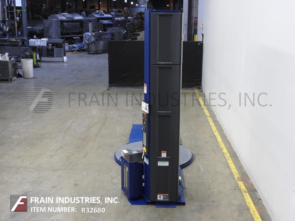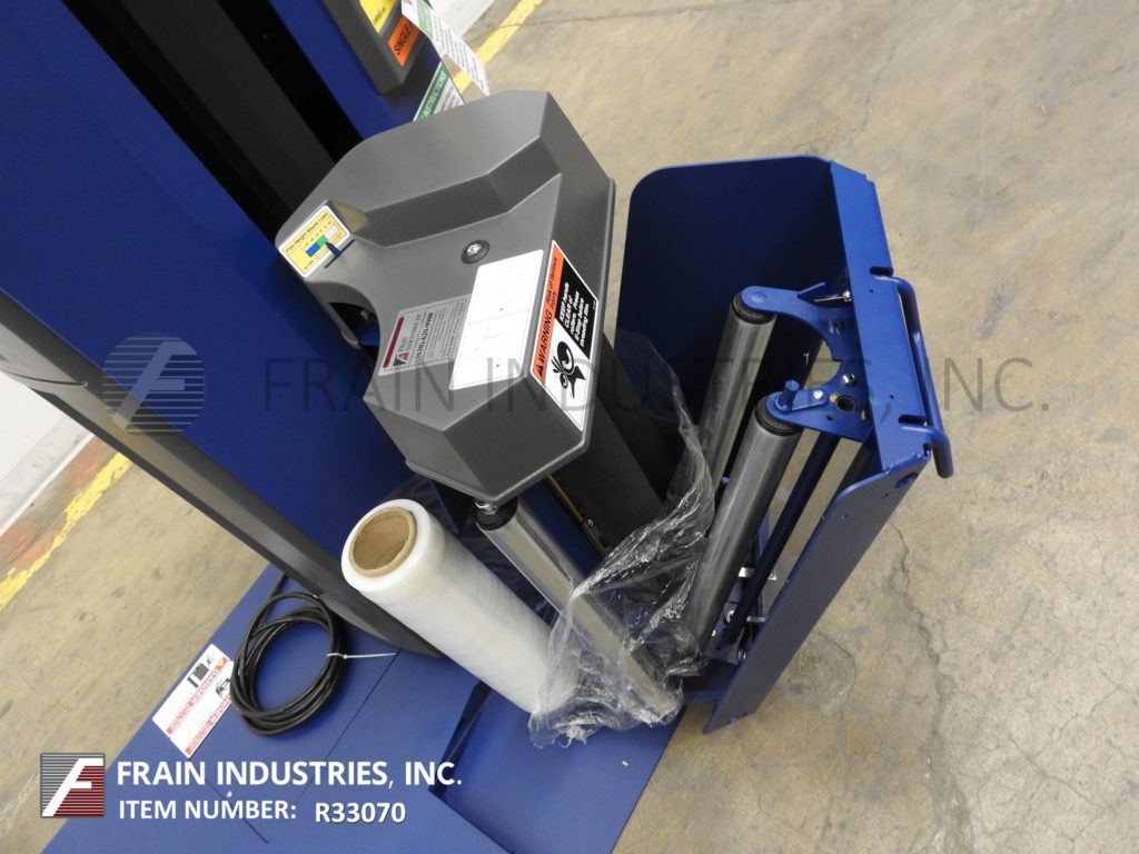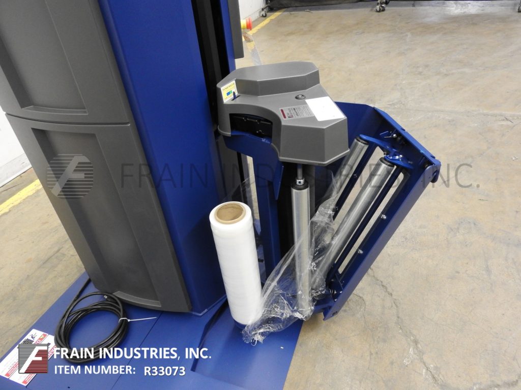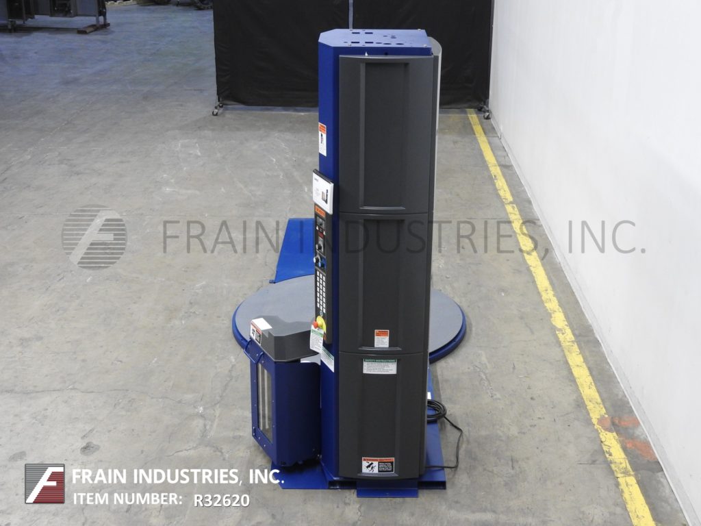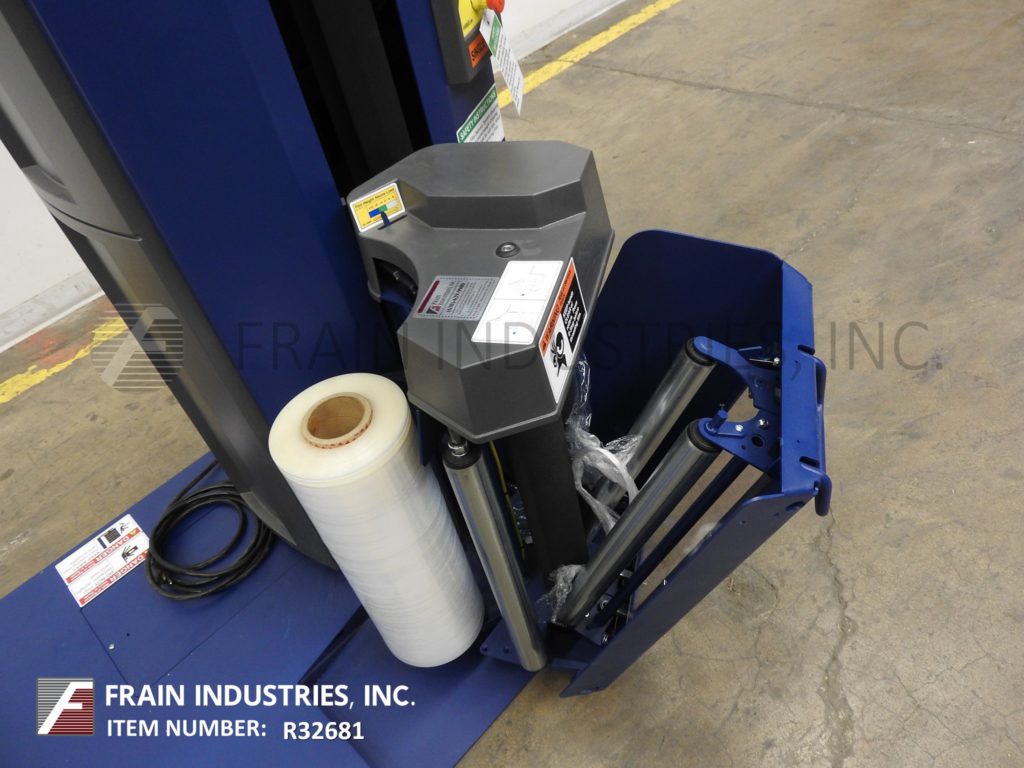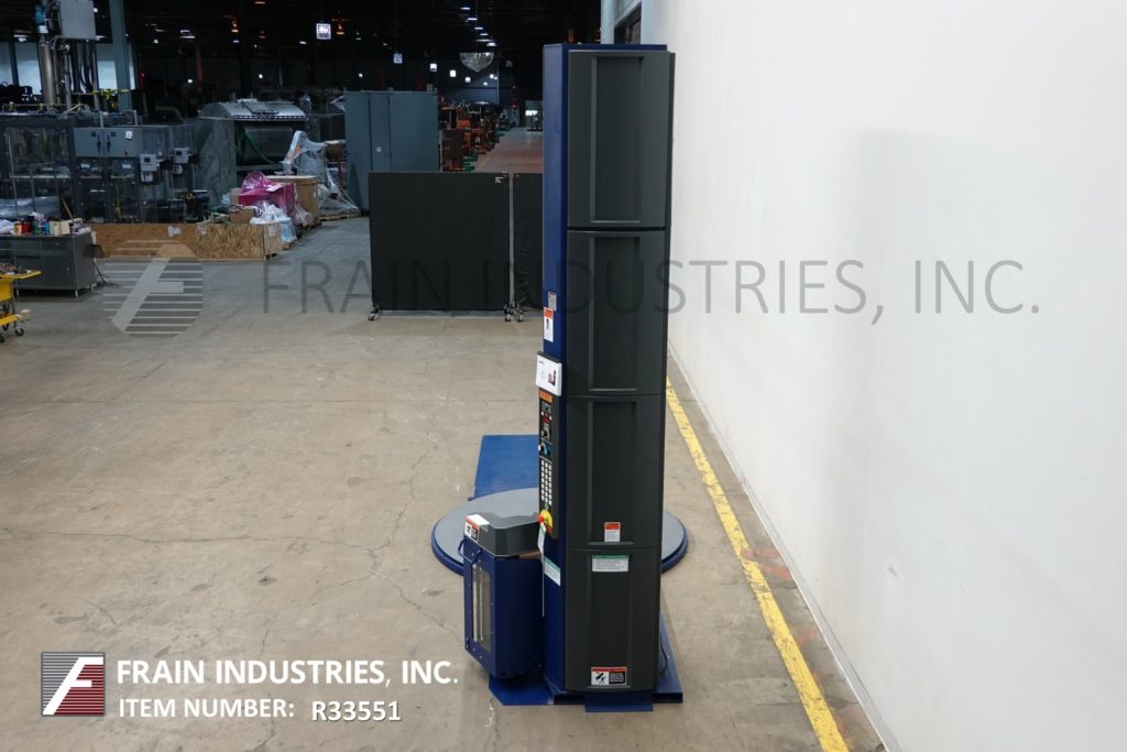 Lantech, Q1000型,自动,柱式拉伸包装机。额定负载为每小时10至45 -取决于材料,应用,环境和机器配置。可以处理36"至54"长度的负载;宽度36"至48";24"至130"高度,最大载重量4000磅。配备80"直径辊子转盘52"长x 2½"外径辊子设置在4"中心1½"间隙,辊子架E-Z螺纹20"宽x 10"外径薄膜辊,热刀切断,擦拭站和笼式安全防护。柱安装的控制面板与包装力,转盘和滚轮马车速度控制刻度盘,与启动和e-stop按钮。(2) 5 '段动力在进料和出料辊输送机52"长x 2½"外径辊设置在4"中心1½"间隙。