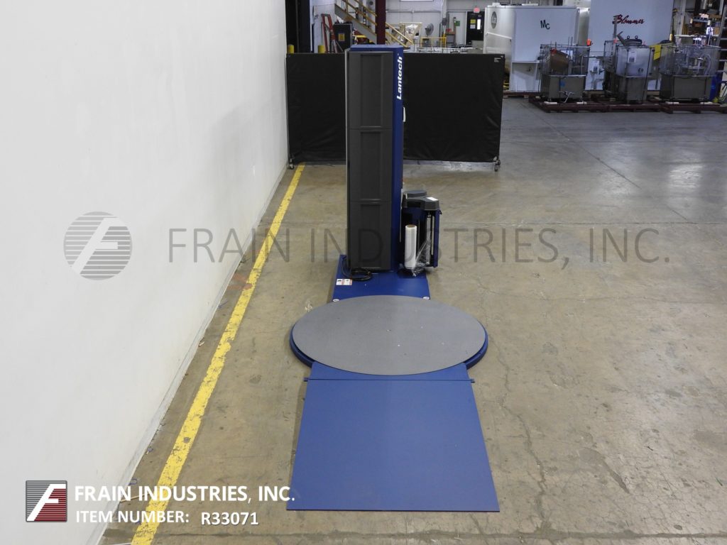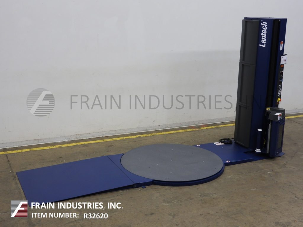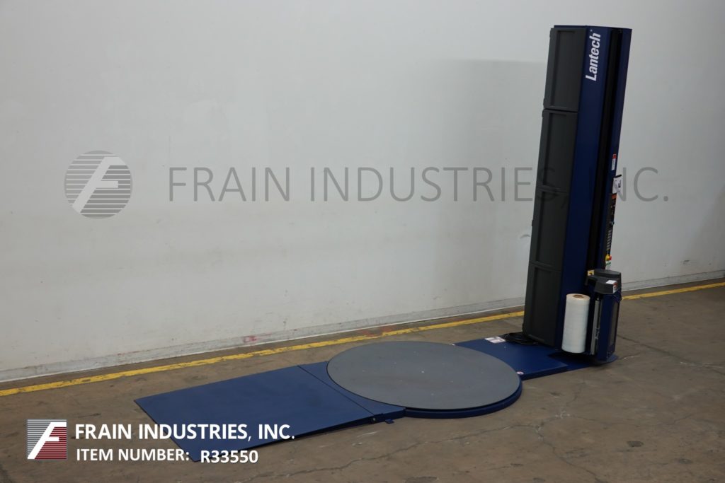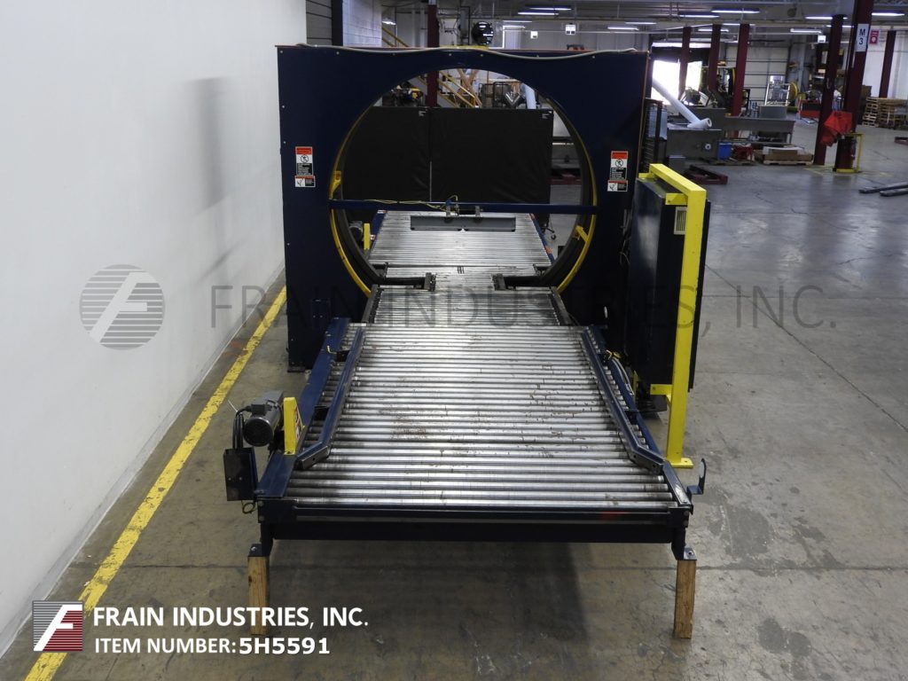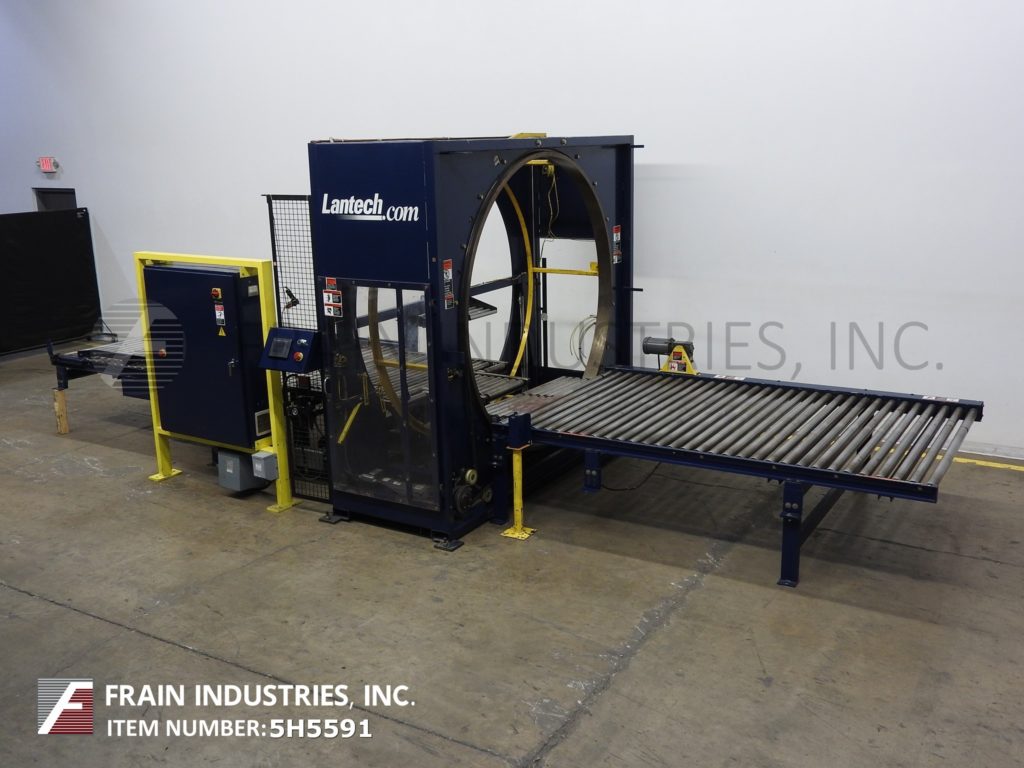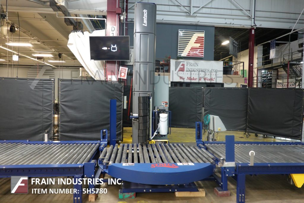 Lantech, QLA型,自动拉伸包装机。负载能力:4000磅。负载尺寸:36"至54"长度;宽度36"至48";24英寸到92英寸的高度。配有80"直径转台和225%预拉伸膜输送系统。PLC与触摸屏人机界面。薄膜规格:宽度可达20英寸;直径可达10英寸;3“核心。 Mounted on heavy duty frame. Includes 1 – 5" section infeed conveyor and 1 – 5" section discharge conveyor. Speed dependent on materials, application and machine configuration.