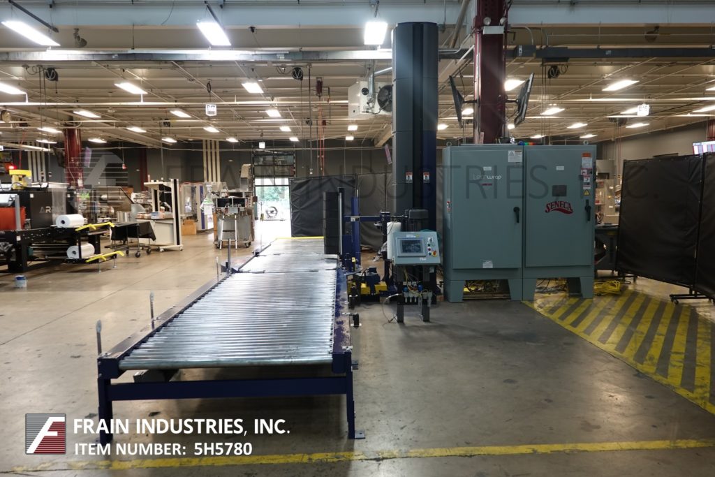 Lantech LR9000系列lanringer,自动,连续运动,轨道拉伸包装每小时产品数量-取决于材料和应用。配备了90"总和82"可使用外径环包装部分,转速高达25 rpm,有20"宽的薄膜卷至10"外径,150%的薄膜预拉伸标准,最小产品长度为24"。安装在重型框架(2)84"长x 62"宽x 32"高功率辊子输送机(1)在进料和(1)放电54"长x 2-1/4"外径辊子设置在3"中心,有1/2"间隙