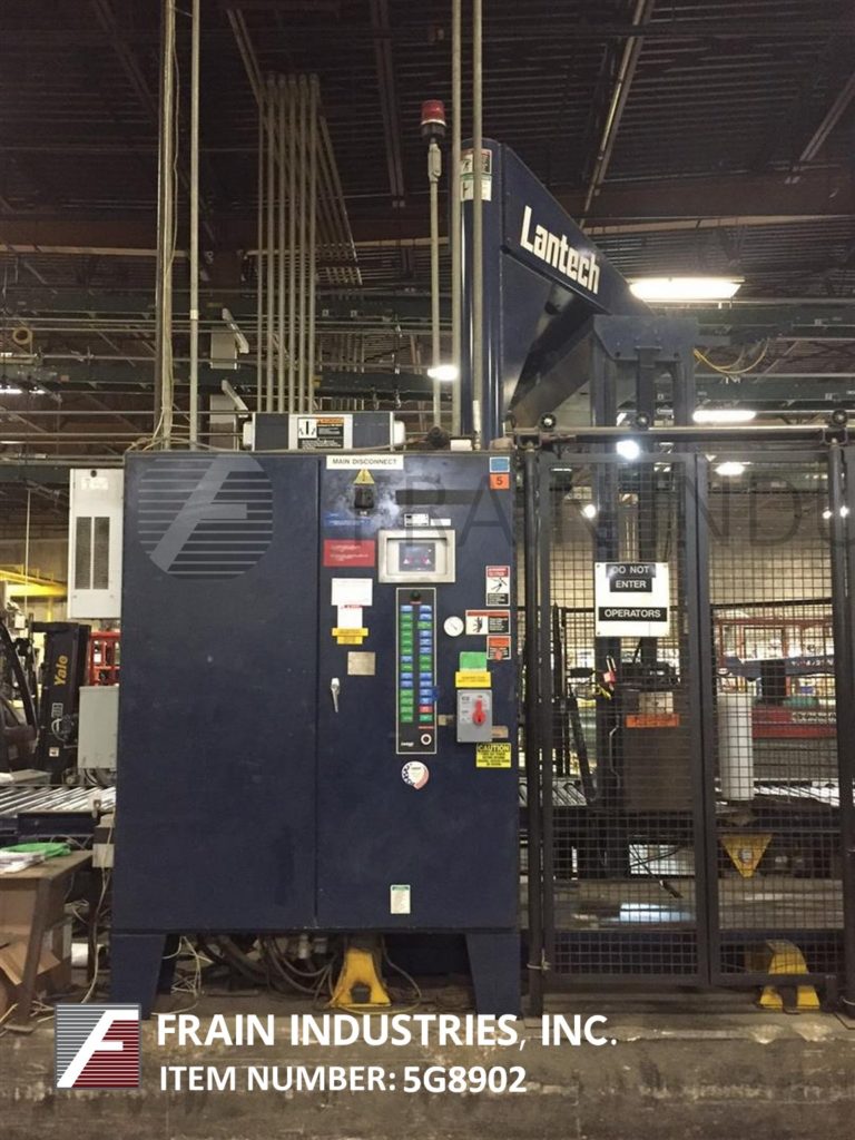 Lantech,型号S-1503,自动,高架旋转拉伸包装纸。负载尺寸:长度为52英寸;宽度为48英寸;30“至80”高。配备EZ螺纹滚动架,拉伸加上包裹头,具有250%的预拉伸标准,剪刀截止,三个60“长x 52”宽和一个84“长x 52”宽滚子输送机部分。控制面板具有A/B PLC。控制器,具有触摸板控件,并带有statis灯条和电子停靠器的读数。费率取决于材料应用和机器配置。