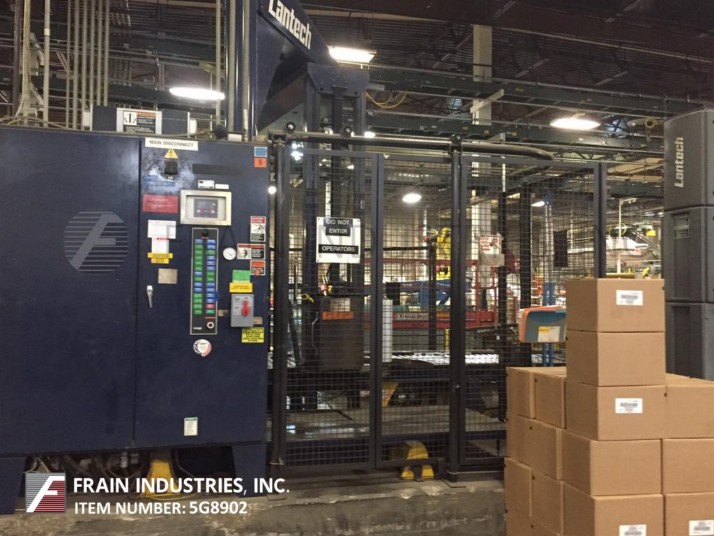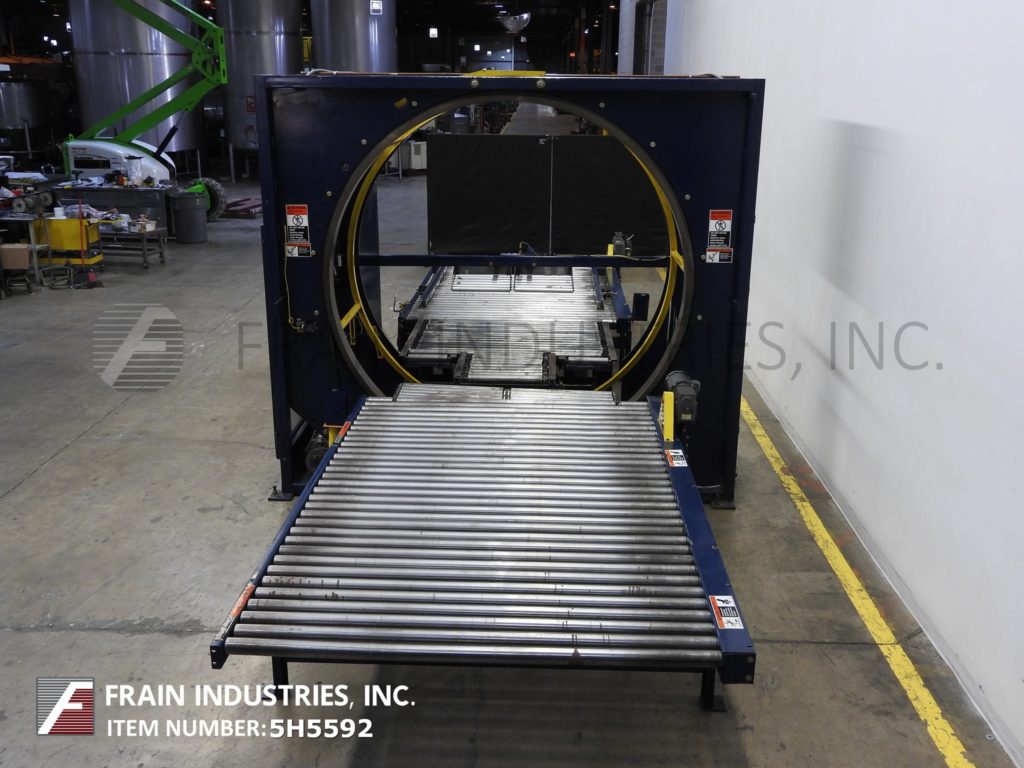 Lantech,型号Q1000,自动,列样式拉伸包装纸。根据材料,应用,环境和机器配置,每小时从10到45个负载量。可以处理36“至54”的负载;宽度为36“至48”;24英寸至130英寸的高度,最大重量容量为4000磅。配备了80英寸直径的滚筒转盘,带有52英寸长的x2½” OD辊,在4英寸的中心设置为1½“间隙,带E-Z螺纹20”宽x 10“ OD胶片卷,热刀切口,擦拭站,擦拭站和笼子的安全防护。柱装置的控制面板,带有包裹力,转盘和滚筒式速度控制拨盘,带有开始和电子停机按钮。(2)5'截面在饲料和放电滚子输送机中供电,带有52英寸长x2½“ OD滚轮设置为4”中心,距离为1½”。