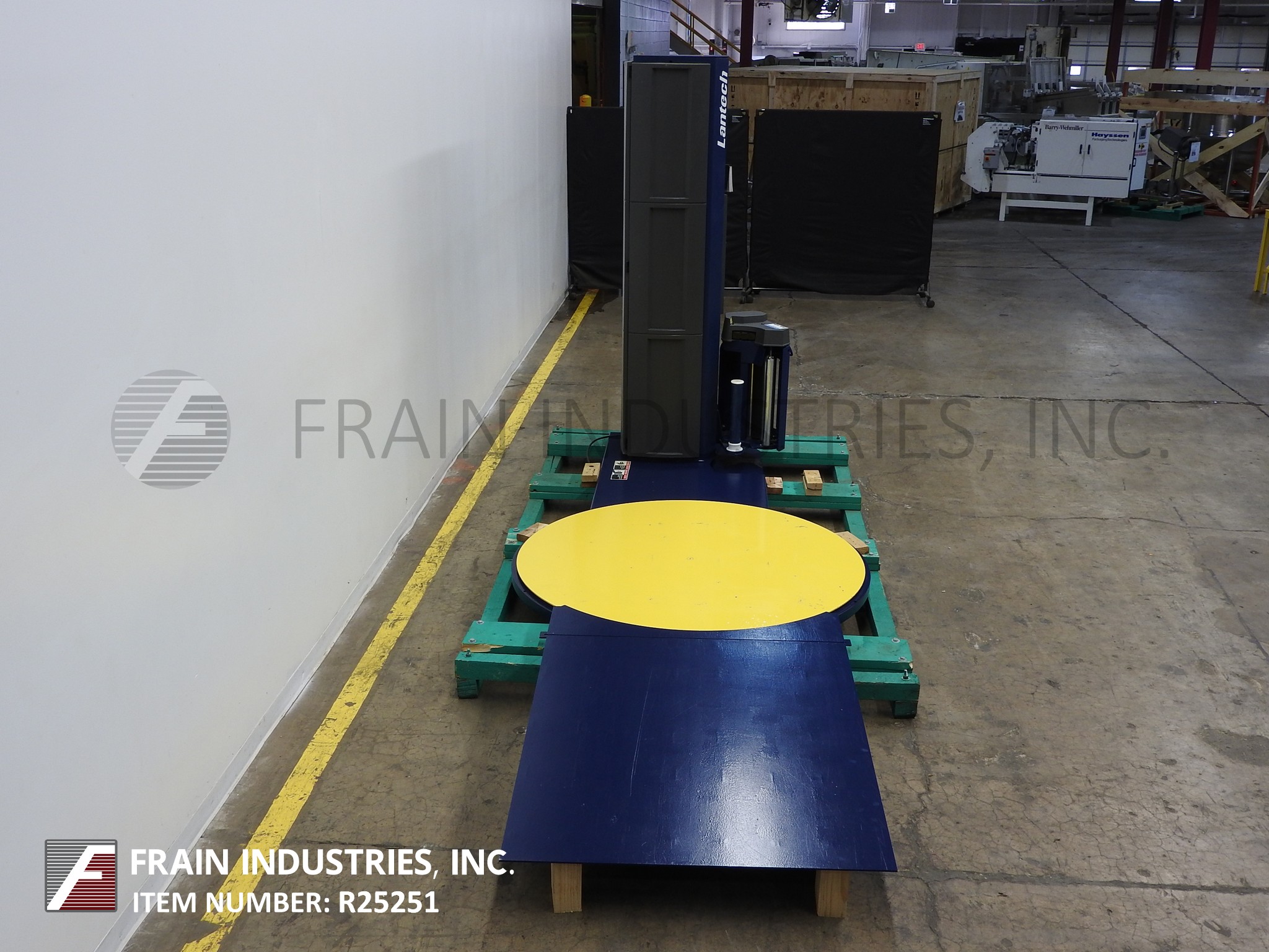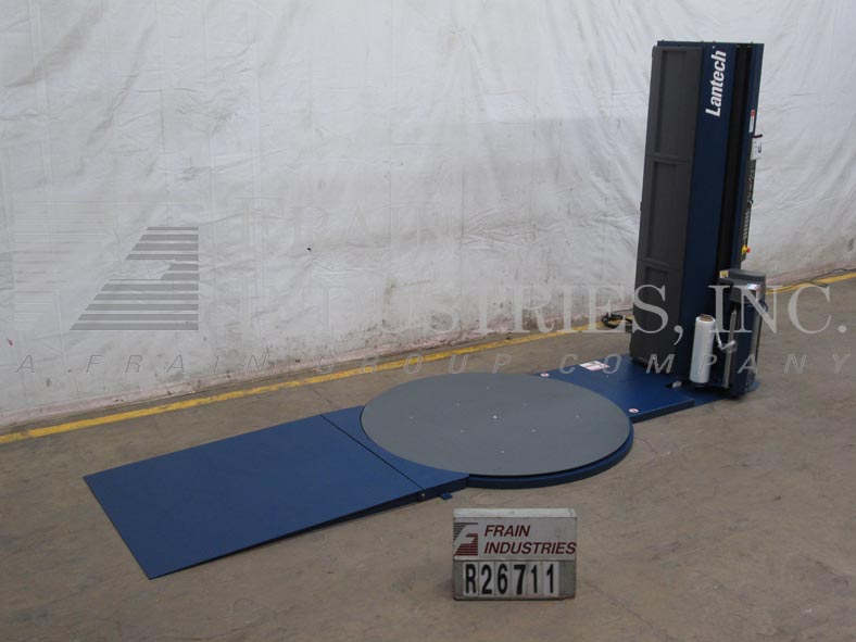 Lantech,自动,柱式,拉伸包装额定5至45负载每小时-取决于材料,应用和机器配置。可承受48“长x 48”宽x 70“高的负载,最大重量4000磅。配备72"直径滚轮转台,54"长x 2-1/2"直径滚轮4"中心与1-1/2"间隙,滚板柱与E-Z螺纹20"宽x 10"直径薄膜卷,200%预拉伸标准,剪断,擦除站和控制面板与A/B控制器。
