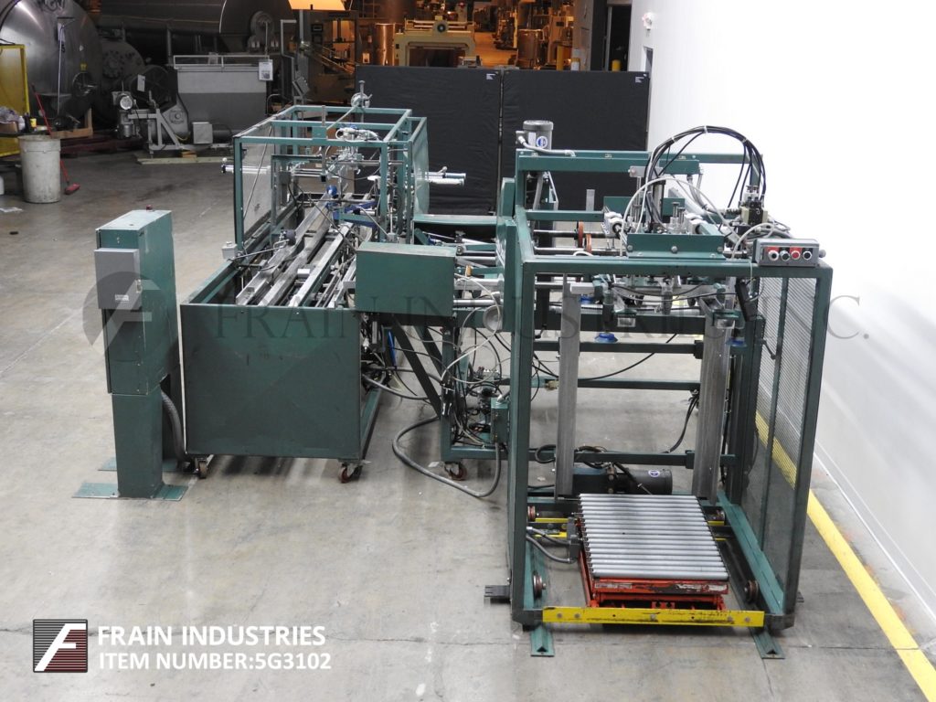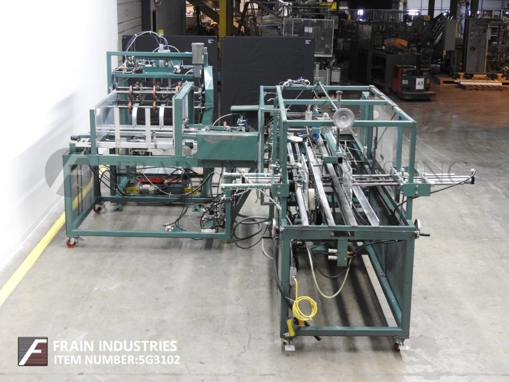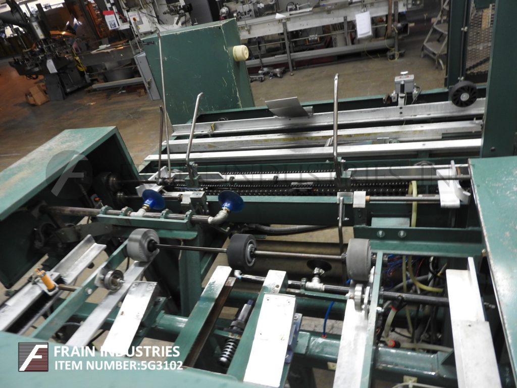 Loveshaw型号CF209XLT8FTL,自动箱安装,热熔胶,底部封堵器额定从5到15箱每分钟-取决于材料和应用。外壳尺寸范围:15"至32"长度;宽度为10"至22",高度为8"至24"。配备空白杂志,吸盘图片n与顶推块和饲料轮子,真空吸盘和摆臂安装工,108年“长期窒息饲料手动曲柄高度和宽度可调例饲料部分与高层平方铁路、皮瓣举升机,后皮瓣意见和犁,诺信热熔胶系统和单冲压臂压缩部分。控制面板带有驱动电机,纸夹,x-lift,箱子安装和纸夹真空开关,胶水和毛坯自动手动和关闭控制。安装在重型基础框架与笼式安全防护。