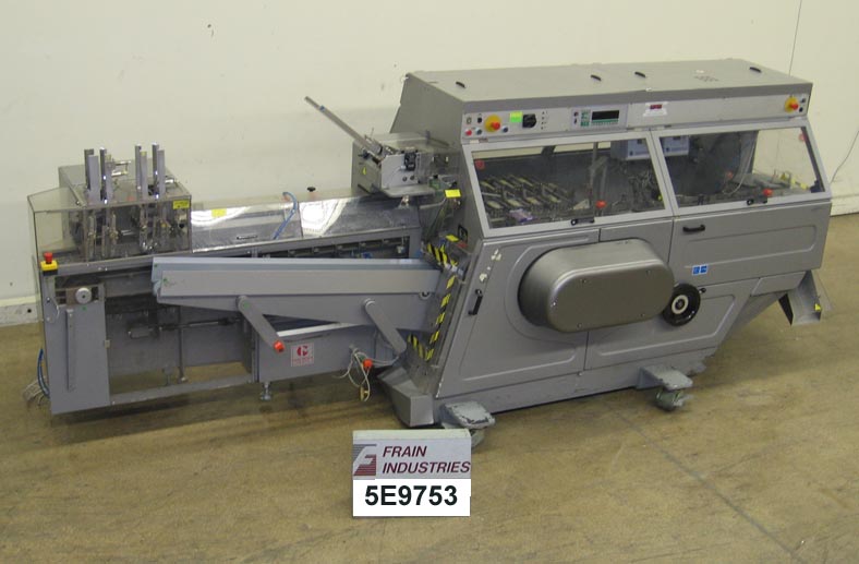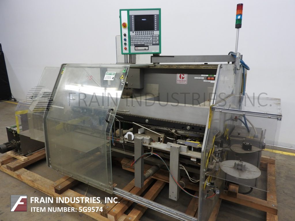Marchesini,型号MC820,自动,水平盒包装器。评分为每分钟1至10例,产品数量 - 取决于材料,应用和机器配置。案例尺寸范围:长度为5½“至20”;宽度为4英寸至13英寸“;4¼“到13¼”高度。产品尺寸范围:0.78“至10.2”的长度;宽度0.39“至5.9”;1.9“至9.8”高度。配有直角102“长x4½”宽产品,采用饲料带式输送机,可调节导轨,动力空白盒杂志,吸入PIC-NAPLE,产品夹住器和Upptacker带(2)侧磁带头,安全防护和Statis Light栏杆控制面板具有带读数和启动/停止/ e-stop按钮的触摸板控制器。 Mounted on heavy duty base frame. Designed for rigid and semi-rigid containers in single or multipacks.
