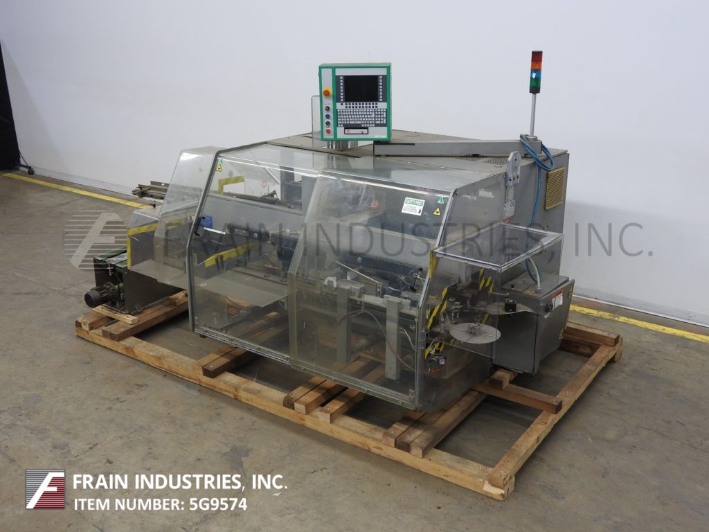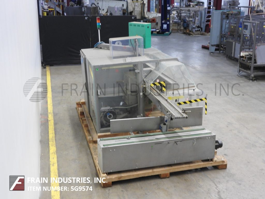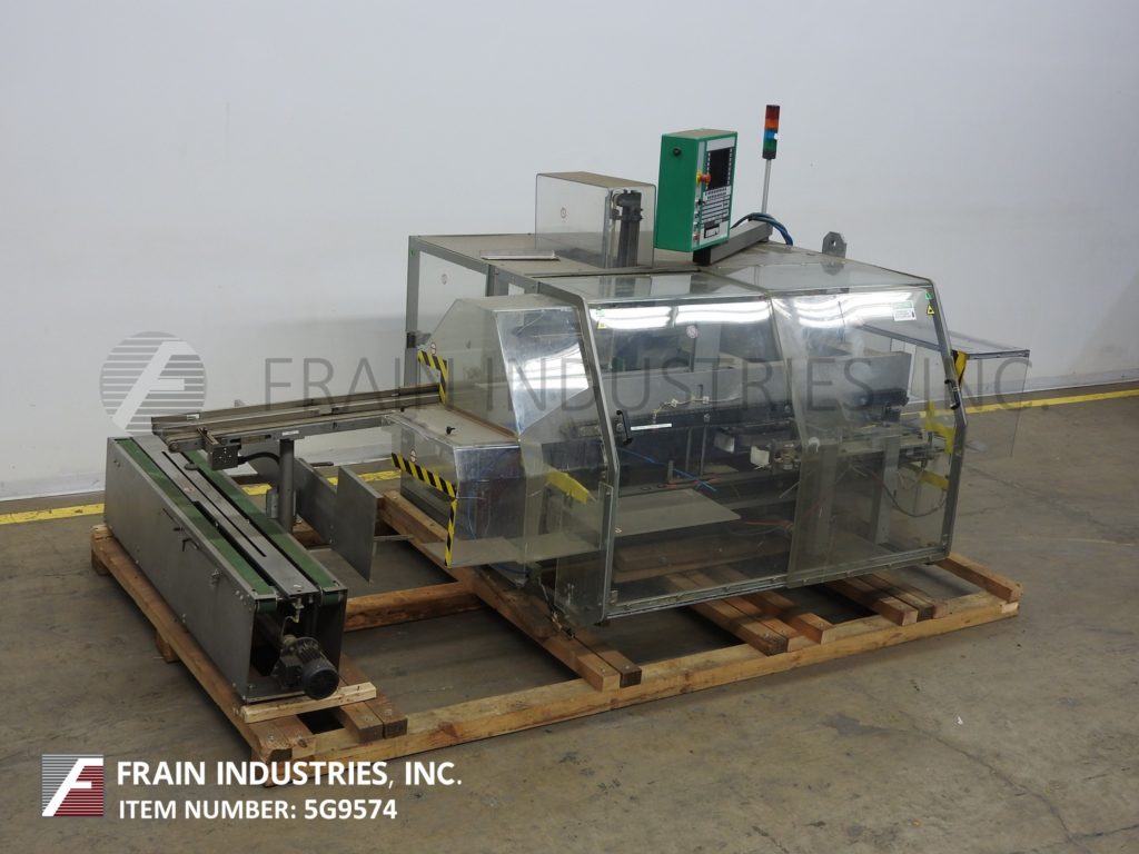 自动,案例竖立器,包装机,胶带封口机,最多可达13个案例,以及300个纸箱@ min(取决于壳体尺寸,以及包模式)。壳体尺寸范围:(5.6“ - 18”l)x(4.8“ - 14”w)x(3“ - 14”h)和纸箱尺寸范围:(1“ - 18”l)x(3 /8“ - 5.6”w)x(2.2“ - 7.2”d)。有一个有动力的空白盒杂志,(4)吸盘往复电纸电杯,(54“L X 8”W)橡胶纸盒进料输送机,带有单臂RAM壳装载机的堆叠器。带2“宽顶/底壳锥形的襟翼闭合部分,双(36”L X 1 1/4“W)顶/底壳夹具带,具有32”排放高度。Marchesini摇摆臂触摸板控制器与面板视图,滑轨安全守卫。