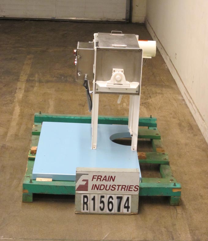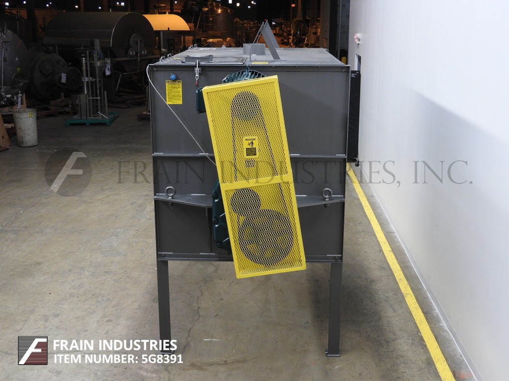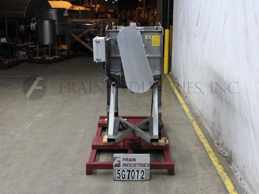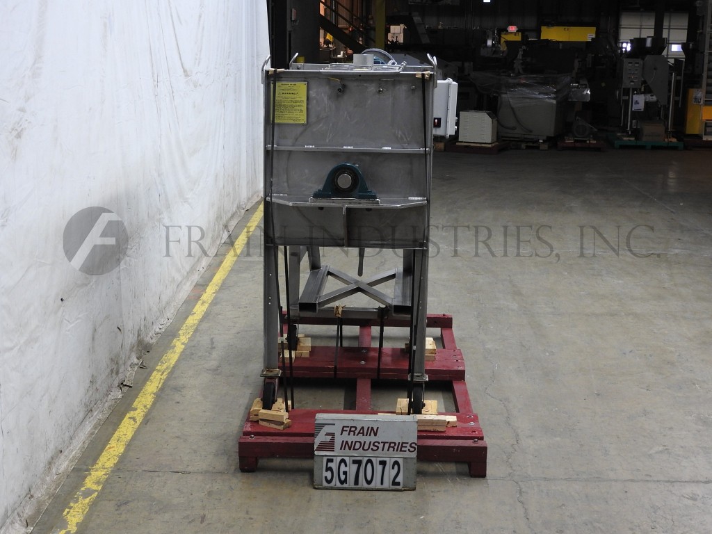 Marion,2041型,20 ft³(可工作15 ft³),带夹套的桨叶式搅拌机,带有316不锈钢接触件。配备48英寸长x 28英寸直径的圆柱形混合室,带升降螺栓下顶盖,(9)顶部安装的喷嘴,由½“NPT配件提供,2¾”直径的电机轴,3”直径的混合轴,带有18”x 5”不锈钢叶片,由7½Hp驱动,直径为5”的蝶阀式中心底部排放,带36“离地间隙。用脚轮安装在(4)支腿基架上。