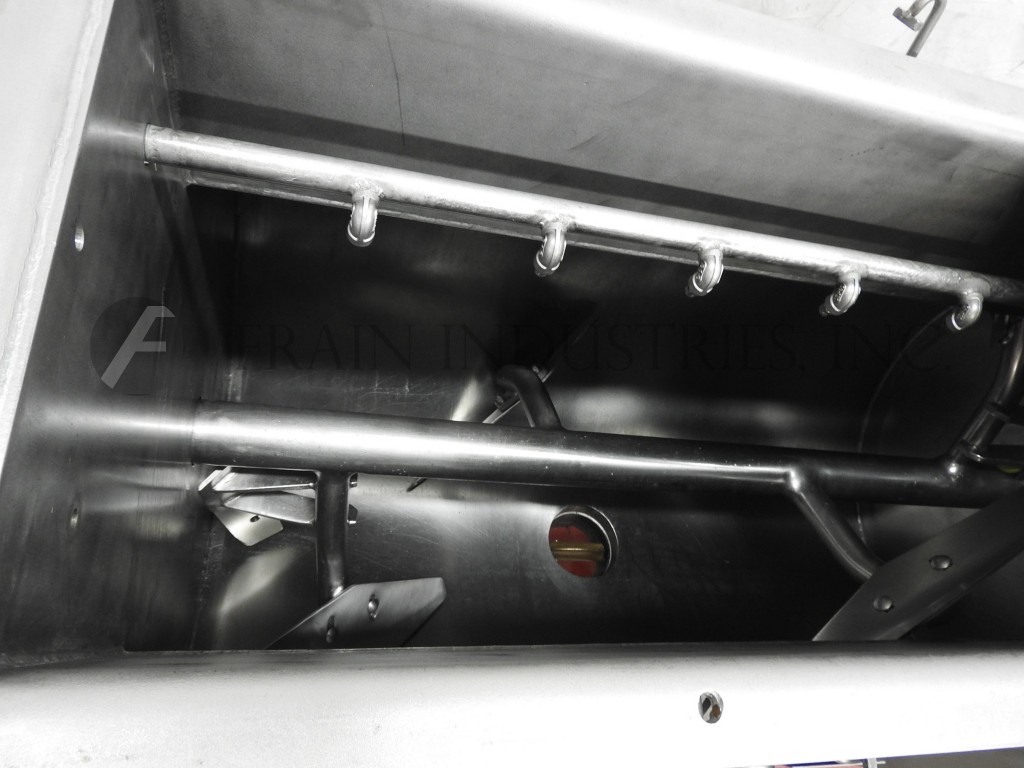 马里恩型号HPS 60ft³316不锈钢桨叶搅拌机。腔室尺寸:72英寸长;42“宽;53深度”。配有三段式铰链盖,安全格栅,两个6”直径充电口,5”直径实心轴,8”直径法兰中心底部排放,蝶阀和带数字计时器的控制面板,安装在不锈钢框架上。