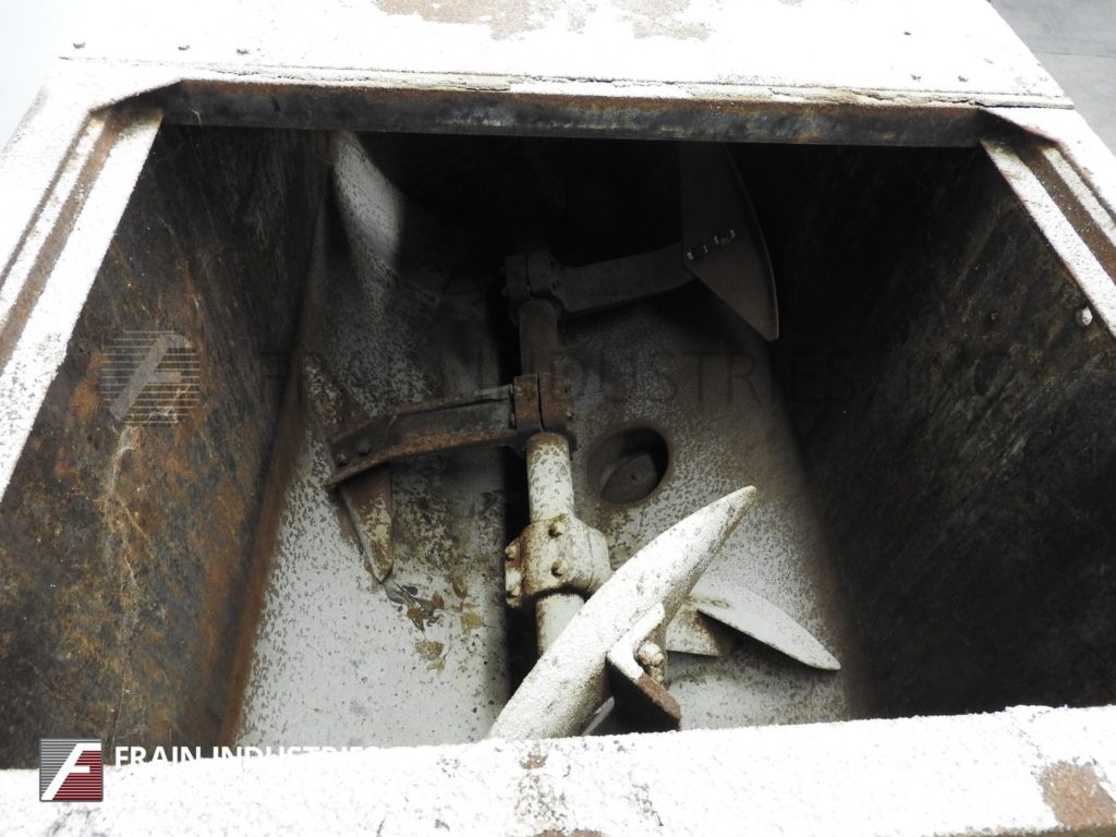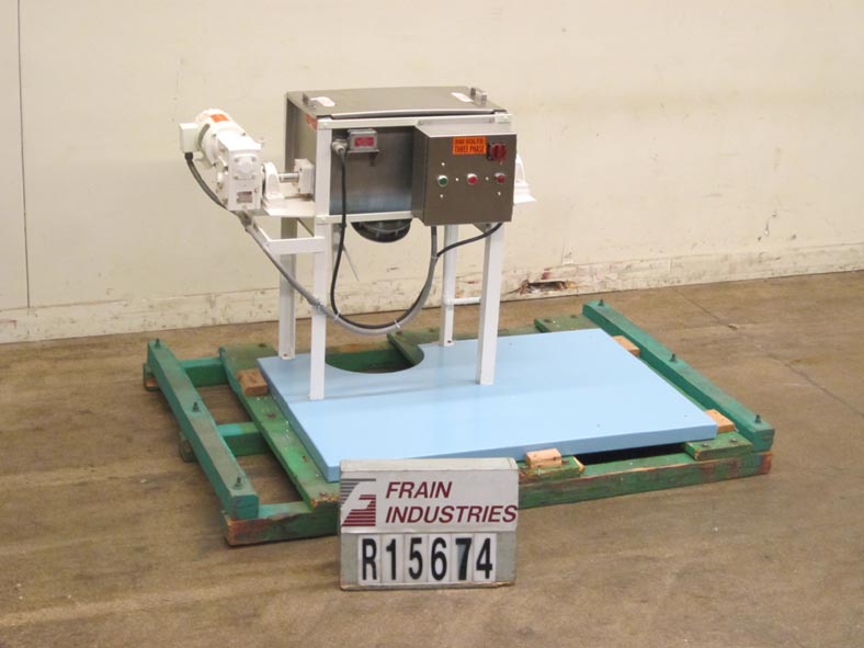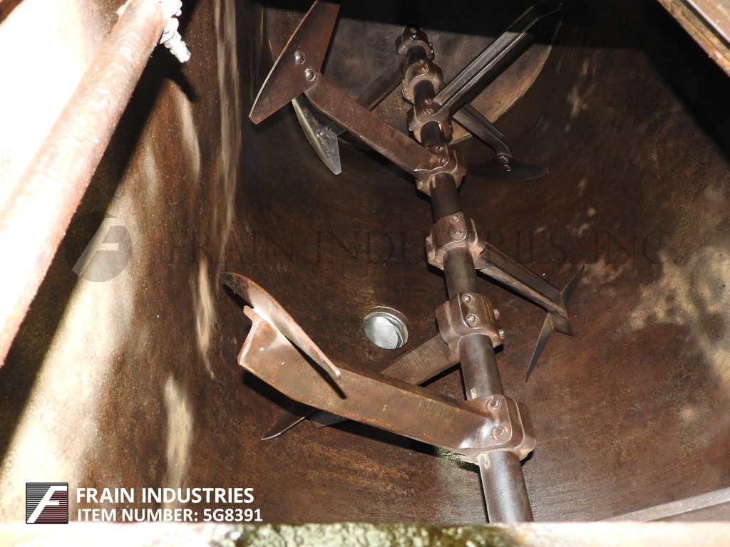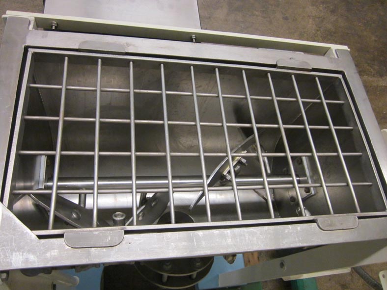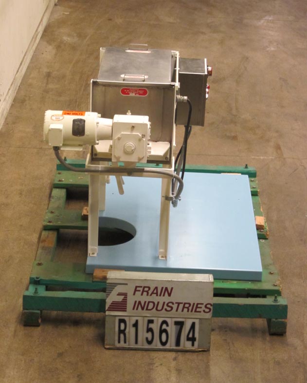 Marion,160 ft³(可工作140 ft³),桨式搅拌机。内部混合室尺寸:96英寸长;宽54英寸;深60英寸。配备两个22“x 22”人孔,带提升盖,8”直径顶部装料口,由1“NPT配件提供的液体喷射喷嘴,2½”直径电机轴,3½”直径混合轴,带有19“x 6”叶片,由40 Hp驱动器驱动,8”内径中心底部排放,带滑动门排放和32”离地间隙。安装在四脚架上。