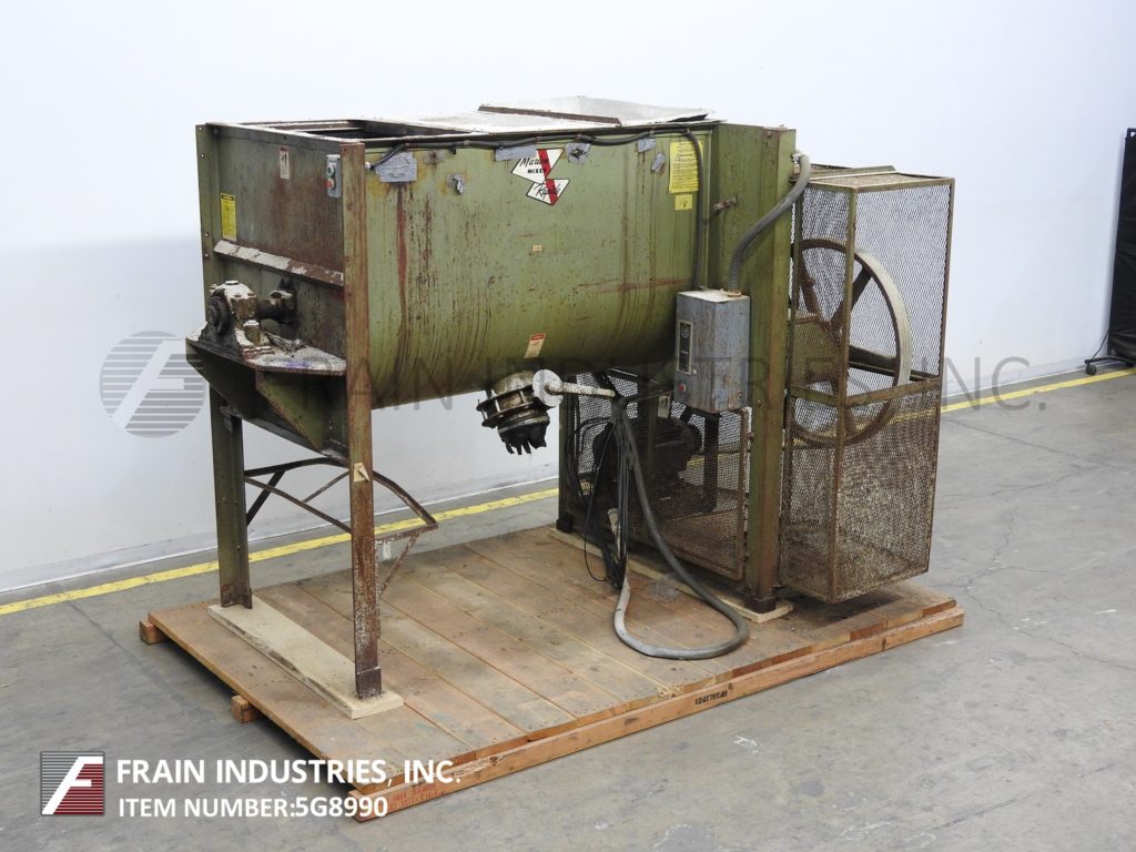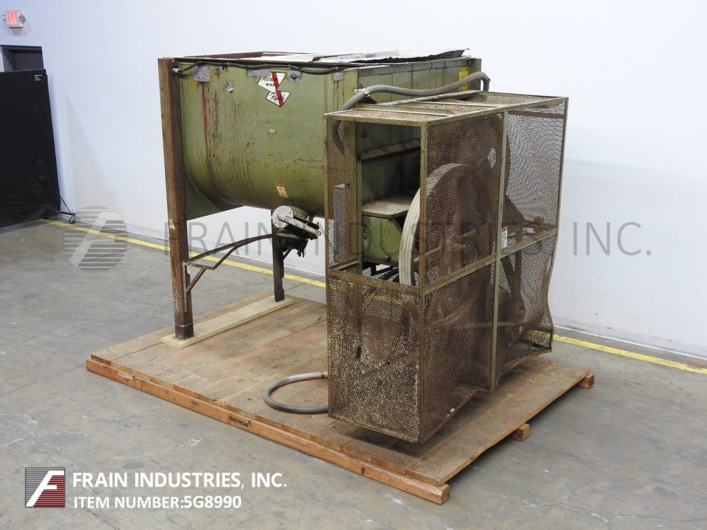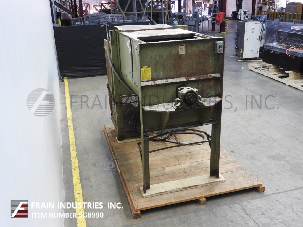 总容量为40立方英尺,工作容量为32立方英尺马里恩、碳钢、碳钢桨式搅拌机。内腔尺寸:长46英寸,宽34英寸,深48英寸。配有压紧盖。外径为2-1/2“的轴,在1-1/2”辐条上有2“宽x 1/2”厚的桨叶。6“内径中心底部排水,带滑动闸门和48”地板净空。10 Hp皮带至带安全防护装置的电机驱动装置,并安装在四条腿喷漆底座上。