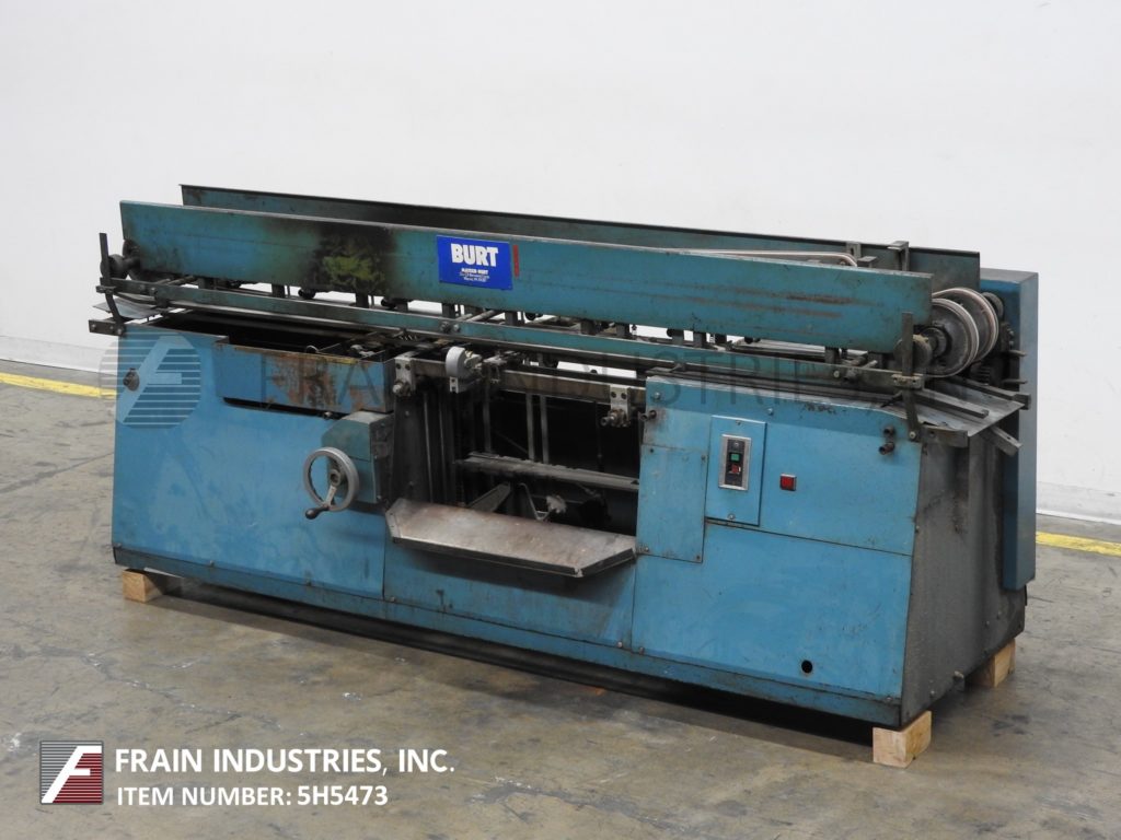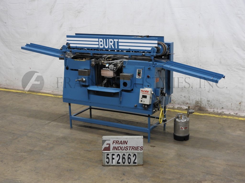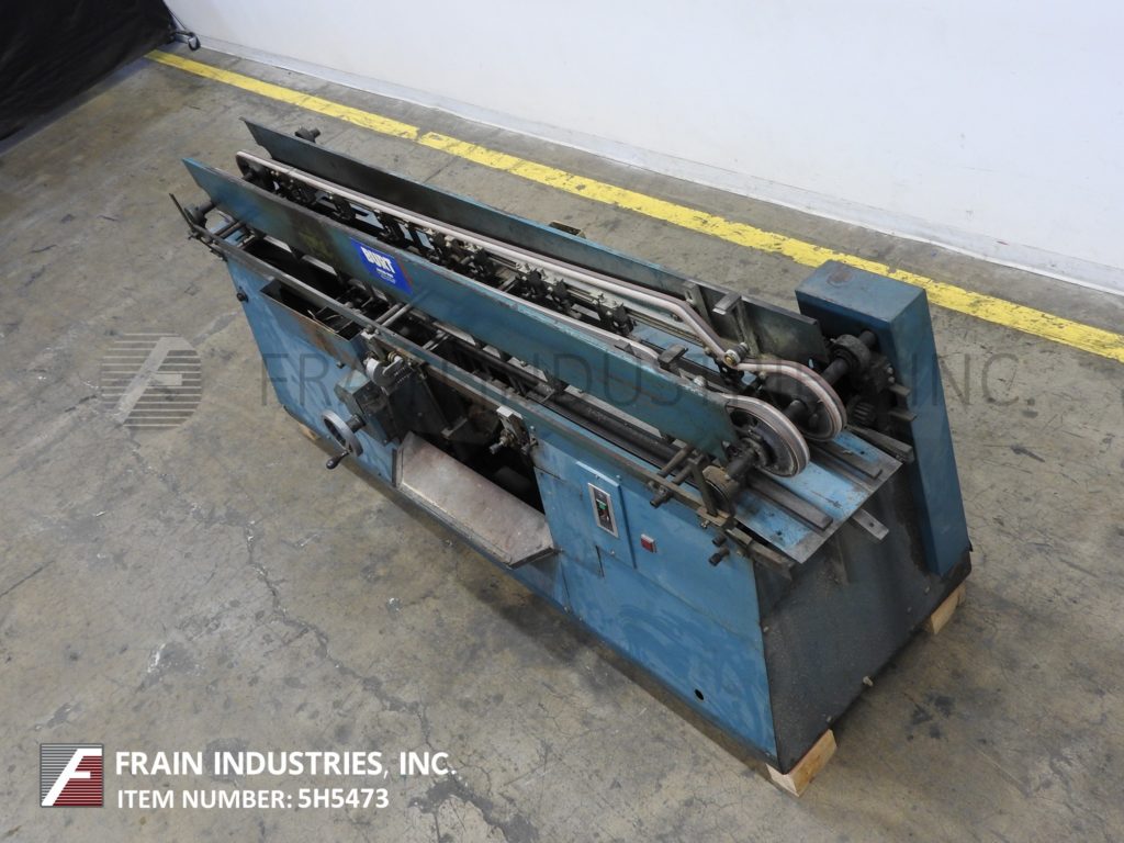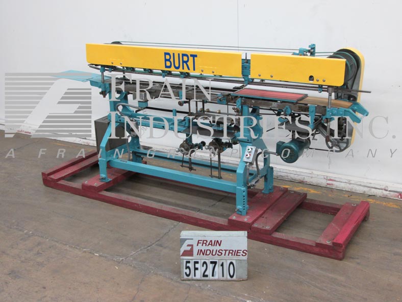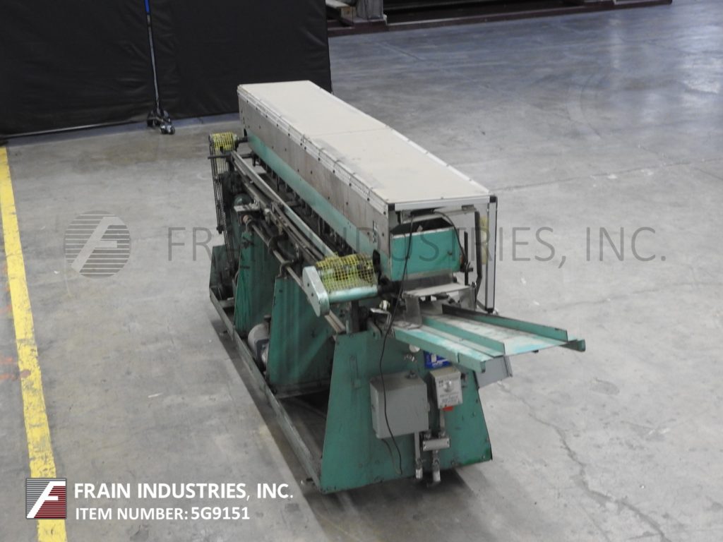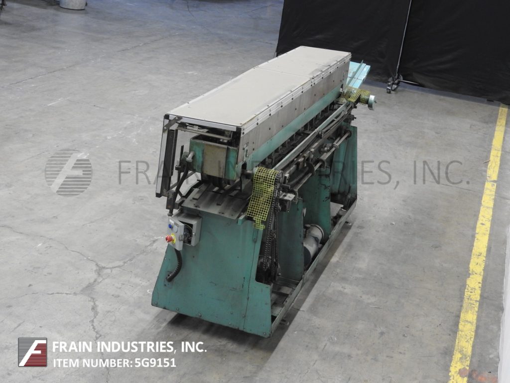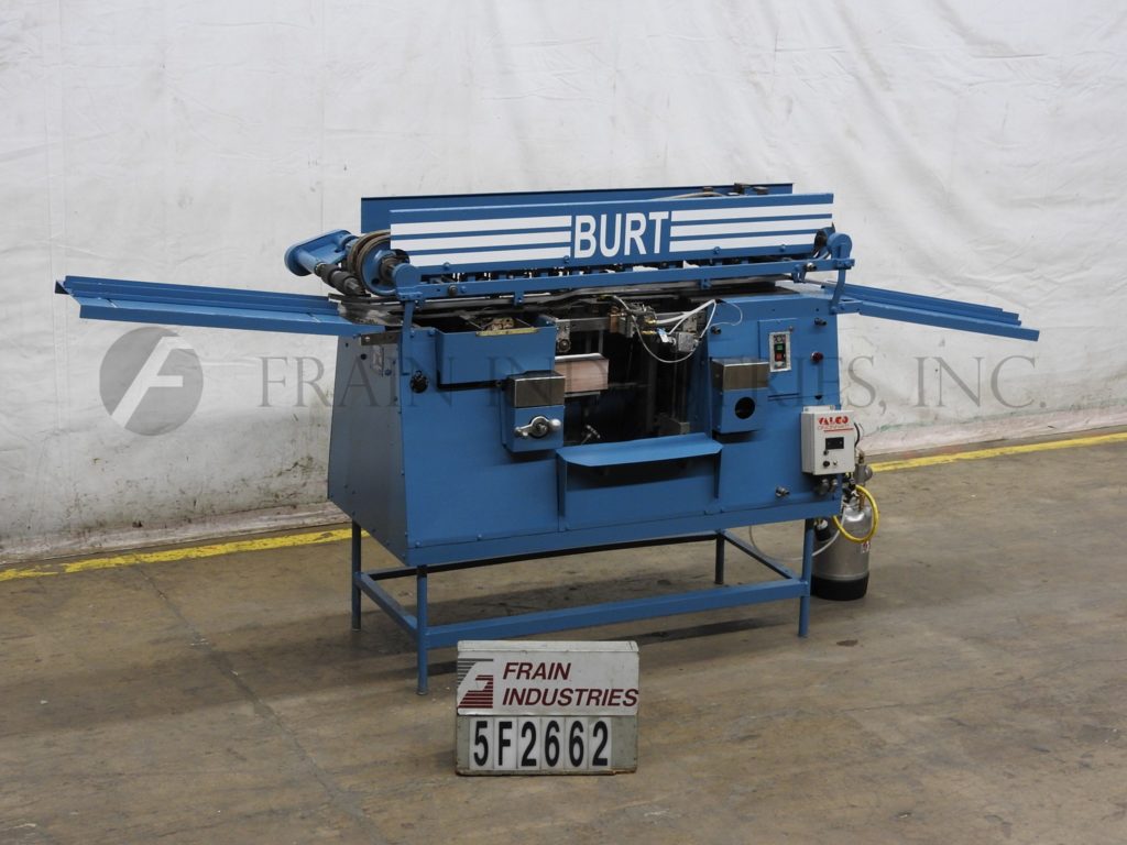 Mateer Burt,型号704D MK V,自动滚过胶标签。额定为每分钟10到600个容器-取决于材料,应用和机器配置。容器尺寸范围:1¾“到7¼”直径;1-9/16"到10½"的高度。标签尺寸范围:4-5/8"至24"长度;1¼“到9¼”宽度。配备电梯进给,双集装箱搬运夹持三角带,热胶锅与直接接触轮涂胶器,单液压标签进给杂志,无集装箱/无胶,启动/停止按钮控制。安装在基架上。专为应用全包胶标签的圆柱形容器的金属,塑料和玻璃(与适当的更换部分)。