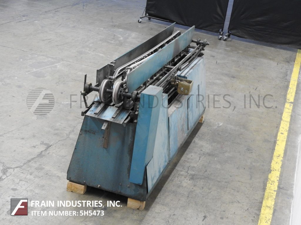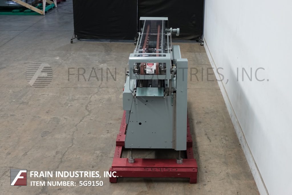 Mateer Burt, 704型自动,通过,胶标签额定从10到600个容器每分钟-取决于材料和应用。容器尺寸范围:1-3/4"到7-1/4"直径;高度1-9/16"到10-1/2"。标签尺寸范围:4-5/8"至24"长度;1-1/4"到9-1/4"宽度。配备爪汽车三角带、单标签饲料杂志与机械调整,热熔胶锅用手指涂抹器和冷胶直接接触带圈密封,没有容器/胶与启动/停止按钮和开/关胶泵开关控制附加__”长在饲料和放电式输送机,38英寸进料和排放高度。安装在(4)腿高度可调框架上。设计适用于圆形包装标签的容器,金属和塑料容器也(玻璃与适当的更换部分)。