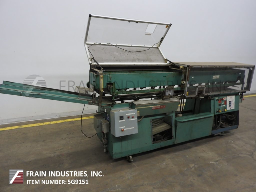 Mateer Burt AU404自动,滚过,热胶包装标签。容器尺寸范围:直径1-3/4"到4-1/4";1-9/16"到14"高度。标签尺寸范围:长度4-5/8"至15";1-1/4"到9-3/4"宽度。配备双皮带集装箱处理,机械标签杂志,热熔胶锅与涂胶器,瓦尔科冷胶lap密封和手动曲柄集装箱调整。速度取决于材料,应用和机器配置。