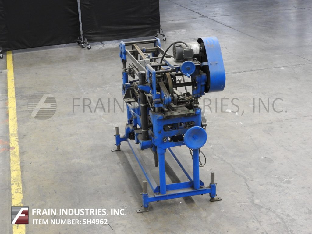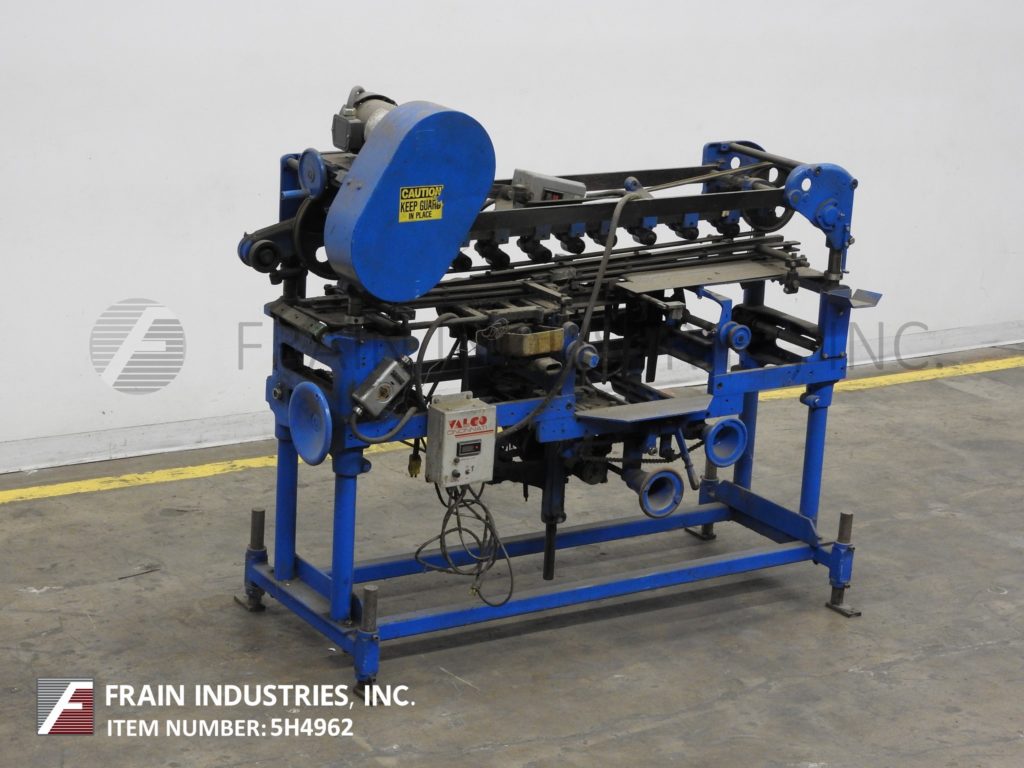 Mateer Burt,408款,卷起的热胶贴贴纸/每分钟10至600个容器 - 取决于材料和应用。集装箱尺寸范围:1英寸直径x 1(9/16)“至10½”高度。标签尺寸范围:4-5 / 8“至15”长度x1½“至9英寸”。配备单标签杂志,单一集装箱夹具V型带,热胶水锅,带直接集装箱轮和搭接煤层冷胶涂有Valco控制器。控制面板带启动/停止机按钮控件。安装在涂漆的框架上,并且具有(4)高度可调调平腿。