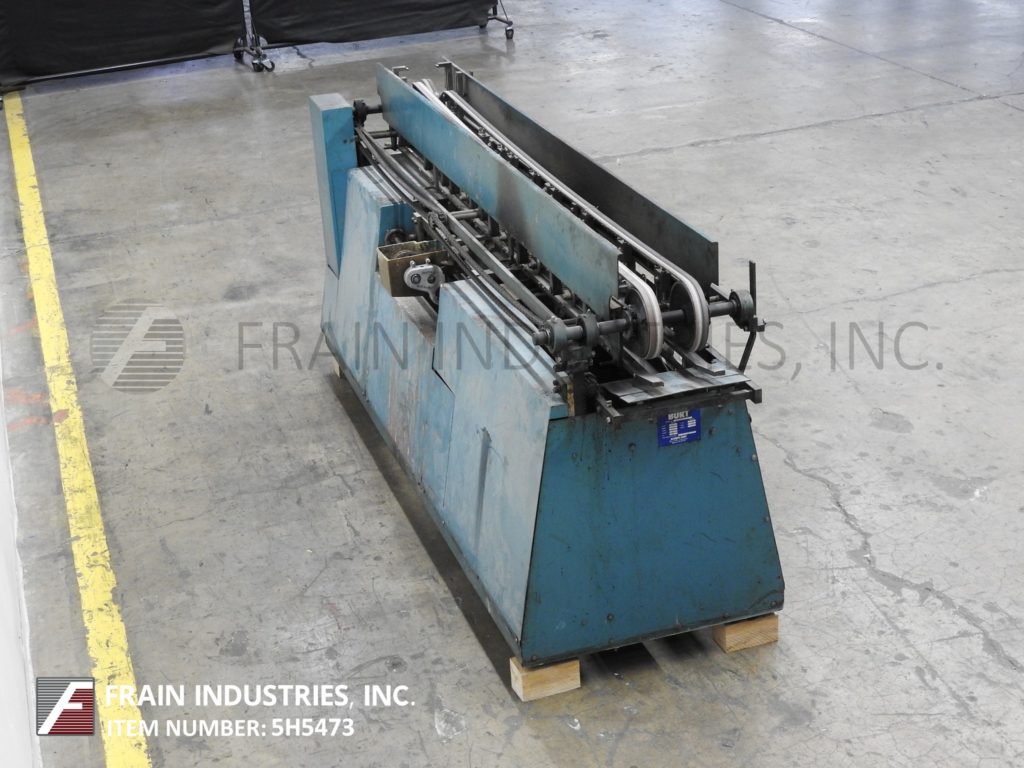 Mateer Burt AU611自动,辊穿过,热胶,包装标签额定10至600 cpm -取决于材料和应用。标签尺寸:宽度可达9-1/2";长度可达22英寸。容器尺寸范围:直径2-1/8"到6-11/16";1-9/16 ' "到7-1/2"高度。配备双集装箱处理皮带,标签饲料,液压标签杂志,热熔胶锅与直接接触轮applicators, Valco冷胶lap密封,手曲柄集装箱调整和可变温度控制。安装在可调节高度的腿。设计用于对圆柱形容器应用全包装标签。