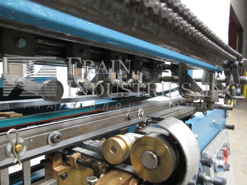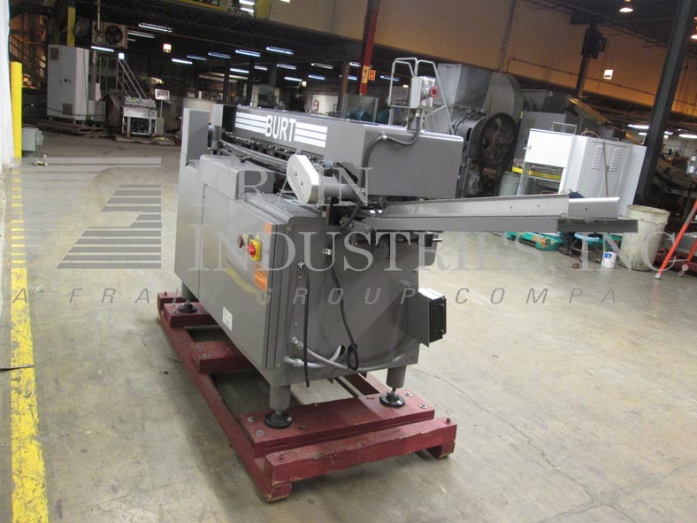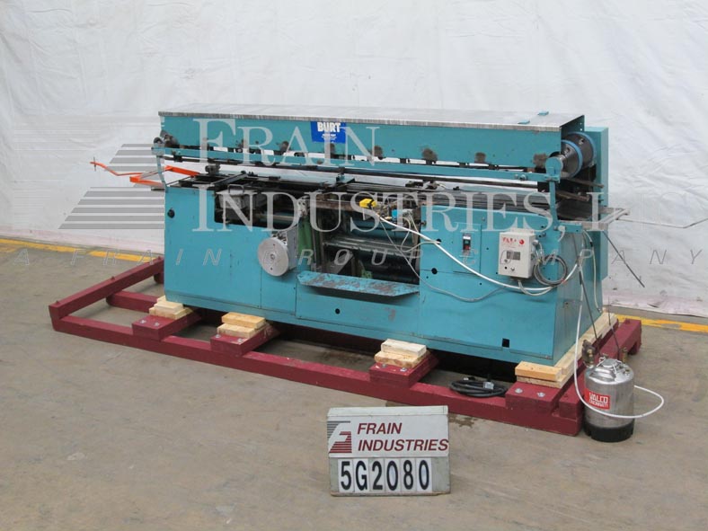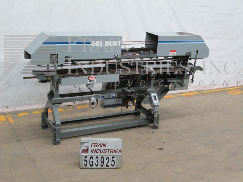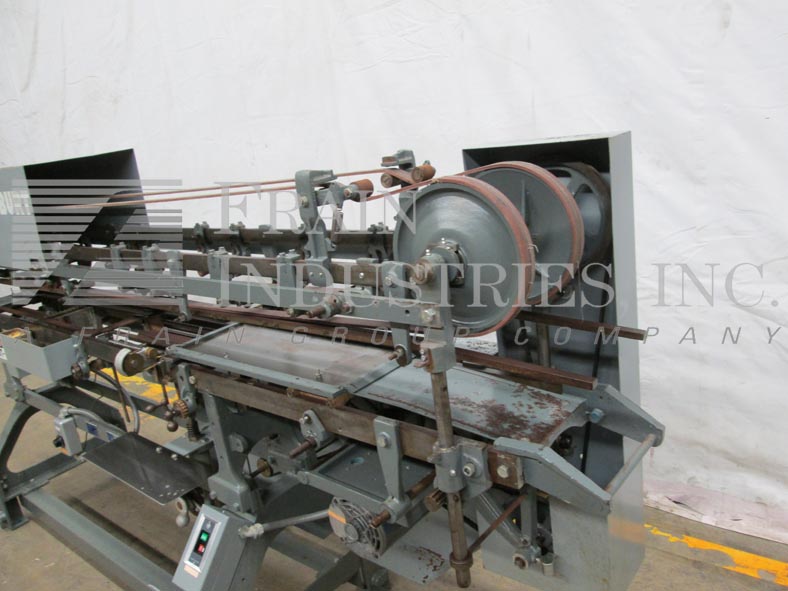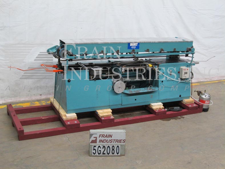 Mateer Burt,型号408,自动滚动胶水贴纸。每分钟50至600个容器 - 取决于材料和应用。容器尺寸范围:1英寸至4½“直径x 1-9 / 16”至10½“高度。标签尺寸范围:4-5 / 8“至15英寸长度x1¼”至9英寸“。配备液压升降标签杂志,5/8“夹持带,热胶水罐带直接集装箱接触式涂抹器,冷带圈密封,具有机器和标签进给启动/停止按钮控制。