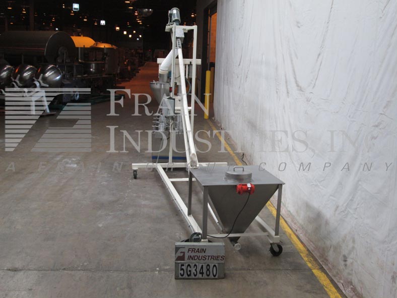 便携式动力柔性螺旋输送机。放电高度:98“。直径为194”长304“长304不锈钢螺杆,柔性多管,36”x 36“x 32”深不锈钢盖料斗,带电荷端口和通风口。与脚轮的共同的底架。3 HP变速驱动器。