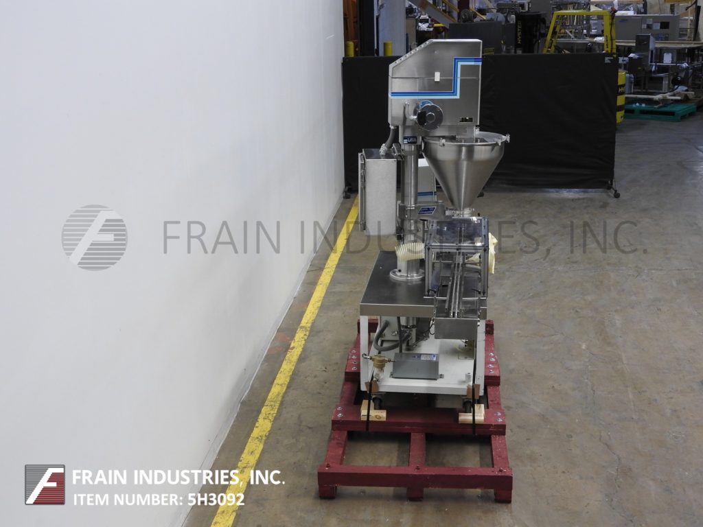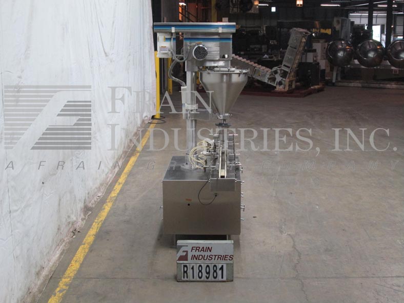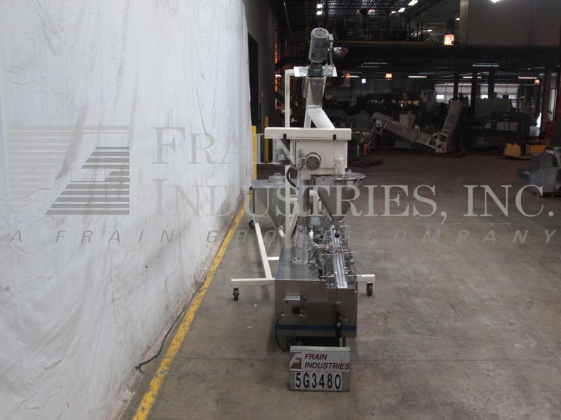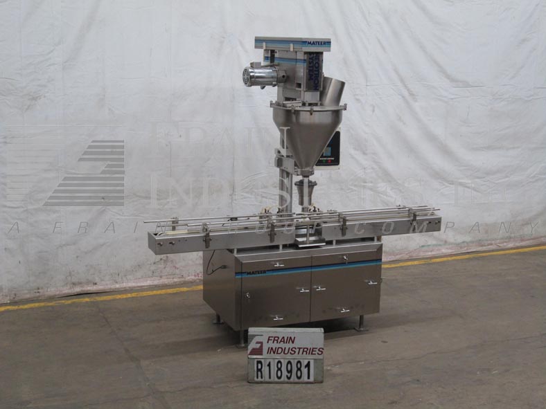 Mateer Burt型号netron,自动,内联,不锈钢,单头螺旋填料额定从10至50填充每分钟-取决于材料,应用和机器配置。容器尺寸:直径不超过5英寸;高达14英寸的高度。配有105"长二链输送机,可调节导轨,振动灌装站,22"直径搅拌不锈钢产品料斗,压紧盖,7"产品口,7" × 5"现场口,无容器/无灌装。控制面板采用A/B PLC,面板视图带有e-stop,安装在不锈钢底座框架上,高度可调腿。