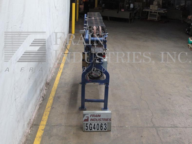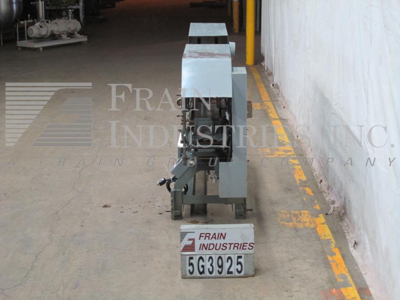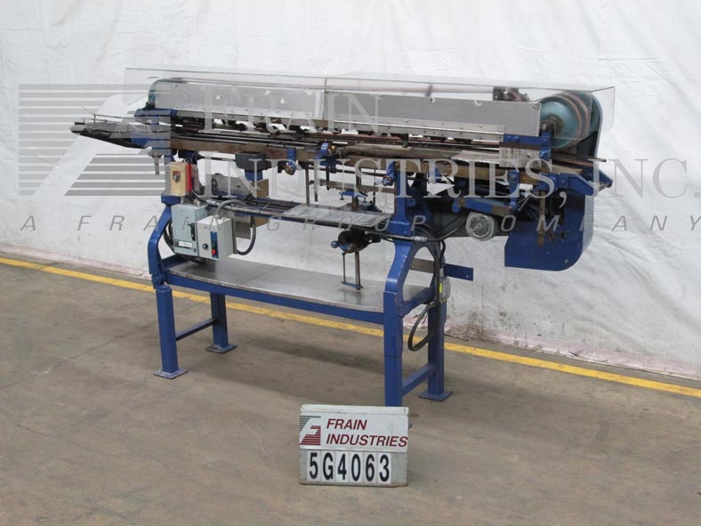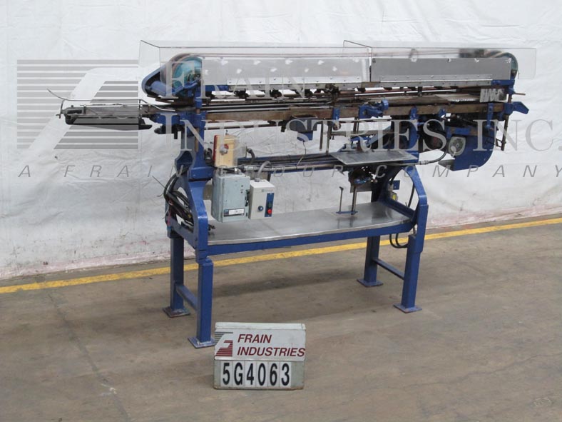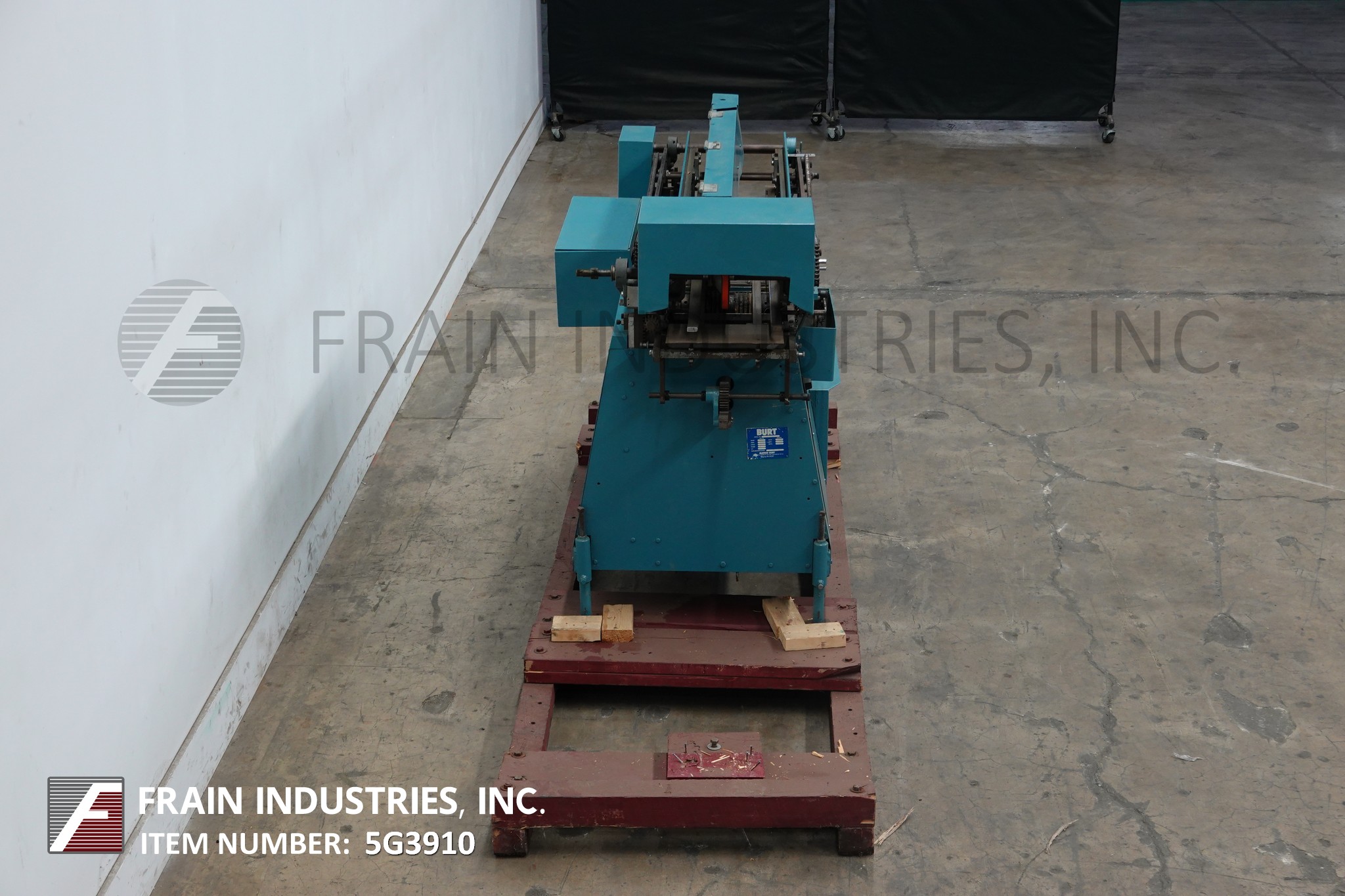 Mateer Burt型号AU611,自动,卷过包装标签的速度从10到600个集装箱每分钟-取决于材料和应用。容器尺寸范围:直径2-1/8"到6-11/16";1-9/16"到7-1/2"高度。配备双容器处理夹持v型皮带,单机械标签送料杂志,无容器/无胶,热胶锅与直接接触手指点胶器和冷胶搭缝带点胶器与启动/停止按钮控制和热控制拨盘,安装在(4)腿基架。旨在将全包胶标签涂抹在金属,塑料和(具有适当变化零件的玻璃)的圆形容器中。