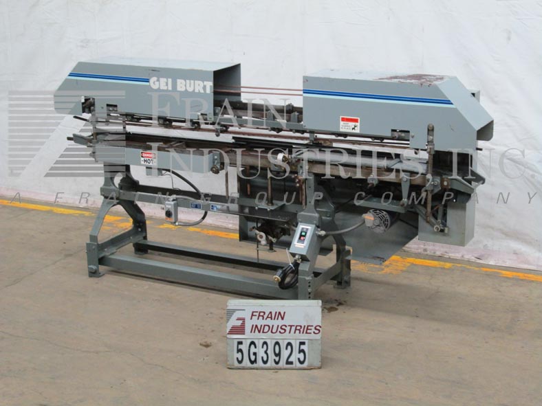 GEI International Inc / Mateer Burt型号AU611,自动,滚动卷绕贴纸,能够速度从10到600个容器每分钟 - 取决于材料和应用。容器尺寸范围:直径2-1/8"到6-11/16";1-9/16"到7-1/2"高度。配备双集装箱搬运夹具V-BER,单机械标签饲料杂志,没有集装箱/无胶水,热胶水盆,直接接触式涂抹器和冷胶圈缝带涂抹器,带有开始/停止按钮控制和热控制转盘。安装在高度可调底座上。旨在将全包胶标签涂抹在金属,塑料和(具有适当变化零件的玻璃)的圆形容器中。