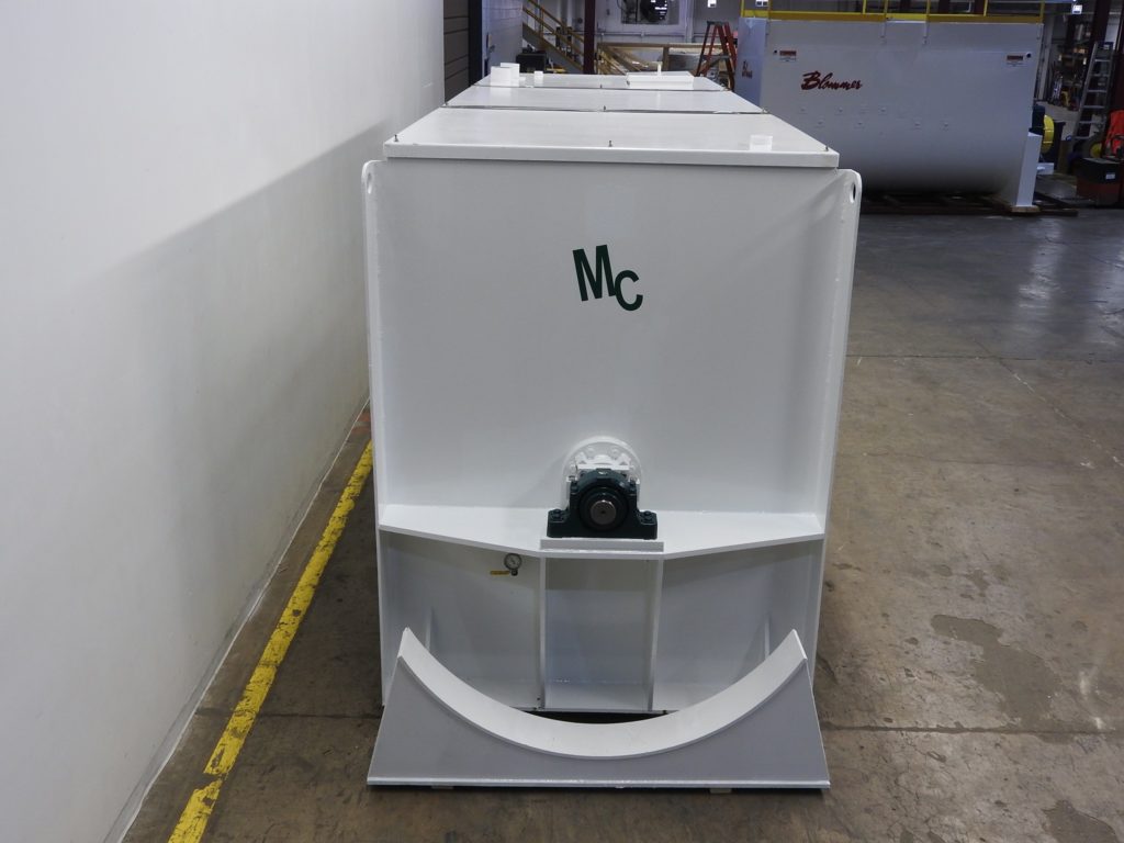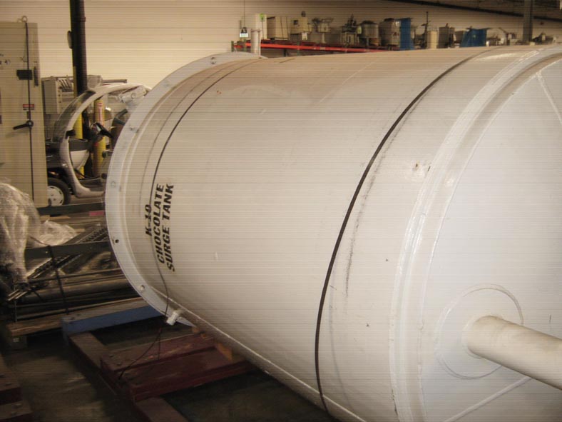 McCarter, 50,000磅,水平,碳钢,低压,½套,巧克力熔化和混合容器每小时与产品的磅数-取决于材料和应用。内室尺寸:213"长度;70年“宽;88年“深度。配有封闭式顶部,18" x 18"人的方式与升降盖,桨式搅拌器有4"外径电机轴与10马力电机驱动,温度计,液位传感器和14"外径8螺栓法兰中心底部卸料与8"地间隙。安装在重型框架上。