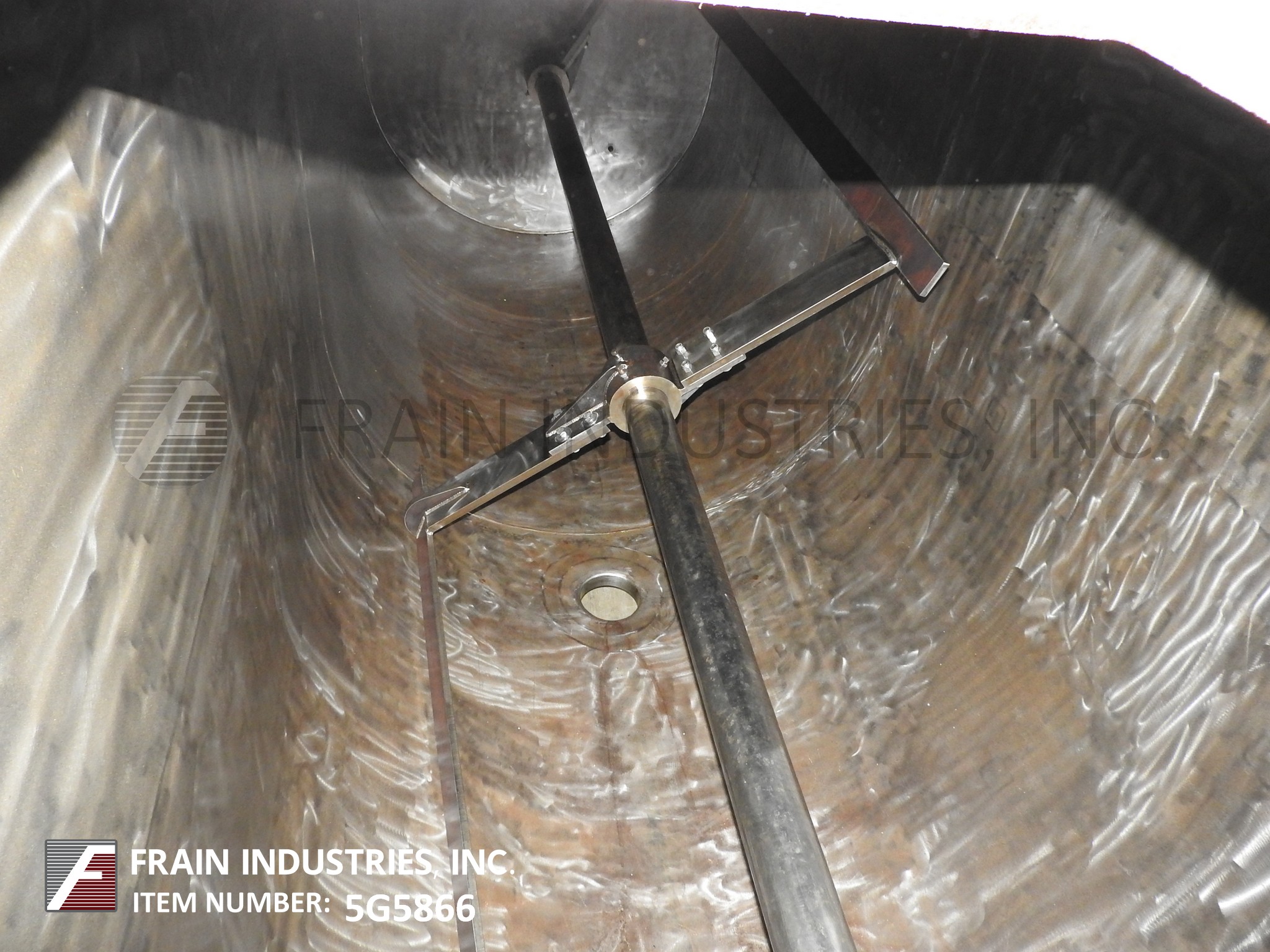 麦卡特,50,000磅,碳钢,水平,低压½套,巧克力熔化和混合容器。每小时产品的重量-取决于材料和应用。内腔尺寸:213“长度; 70”宽;88" 在深度,配备了一个封闭的顶部,18" ×18" 的人的方式与剥离盖,桨式混合器中与41/2“ 由一个10马力的电动机,温度计和14" OD 8螺栓法兰中心底部从动OD电动机轴排放2“地间隙。