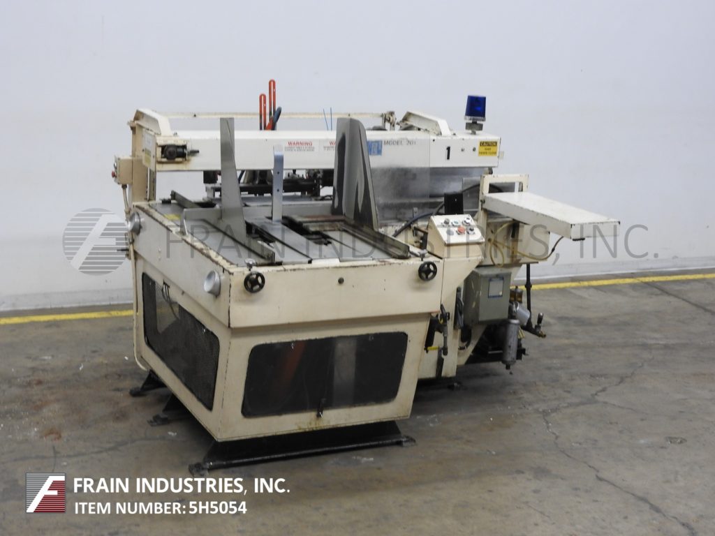McDowell型号201lH,自动左手箱竖琴和底部封口机从5到30个案例/分钟额定 - 取决于材料和应用壳体尺寸范围:5-3 / 4“至24”的长度;5-3/4"至24"宽度;深度10到33英寸。能够处理HSC和HSC内置分频器,RSC, AFM, FOL和蜡涂层纸箱。配备26英寸的长空盒杂志,机械回谱吸盘PIC n和柜台架设段,Nordson Problue热熔胶单位,底部主要和小襟翼更靠近单RAM臂压缩部分和气动高度可调桅杆。控制面板已开启/关闭,手动/自动循环开关,启动,停止,向上,向下和E-STOP按钮控制。安装在重型基础框架上。