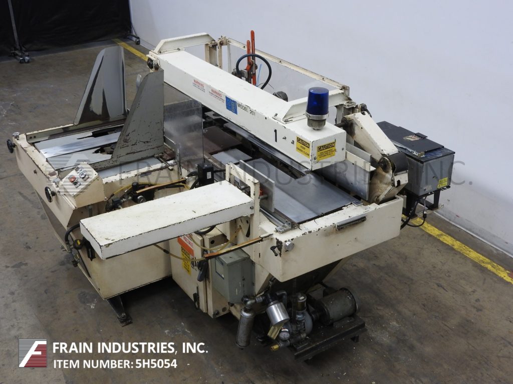 McDowell型号201RH,自动左右壳体射击器,热熔胶,底部封口机从5到30个案例/分钟 - 取决于材料和应用。壳体尺寸范围:5-3 / 4“至24”长度为5-3 / 4“至24”“宽度;深度10到33英寸。能够处理HSC和HSC内置分频器,RSC, AFM, FOL和蜡涂层纸箱。配备28英寸的长空盒杂志,该杂志是手工曲柄可调节,机械回谱PIC N和壳体架设段,热熔胶单元,底部主要和小襟翼近挡板和单柱形臂压缩部分,带气动高度可调桅杆和真空泵。控制面板具有机器开/关桅杆上/下启动,停止,e-stop控件,运行Statis灯。安装在底座上的底座上。