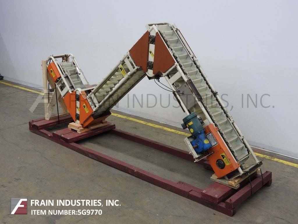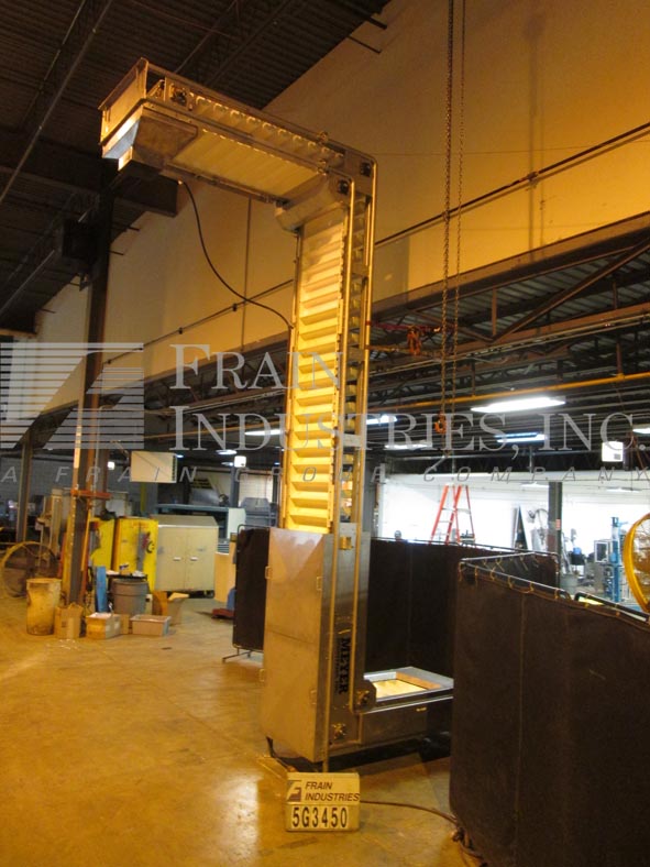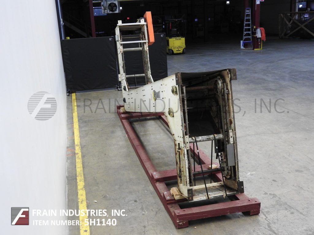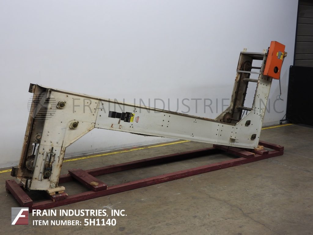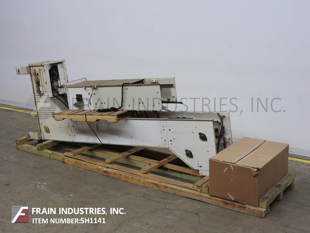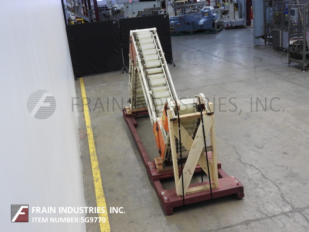 Meyer,型号PA45218S,Z样式桶电梯。每分钟产品的磅数-根据材料,应用和机器配置而定。配有白色塑料产品桶,内部尺寸为18英寸长x 5“宽x 2-3 / 4”深,具有79“长卧式楼层,饲料高度为30英寸,为182”垂直升降机,宽度为27“框架,到80“顶部水平顶部运行并具有开放式185”排放高度“。由1½HP顶部安装电机驱动器供电。