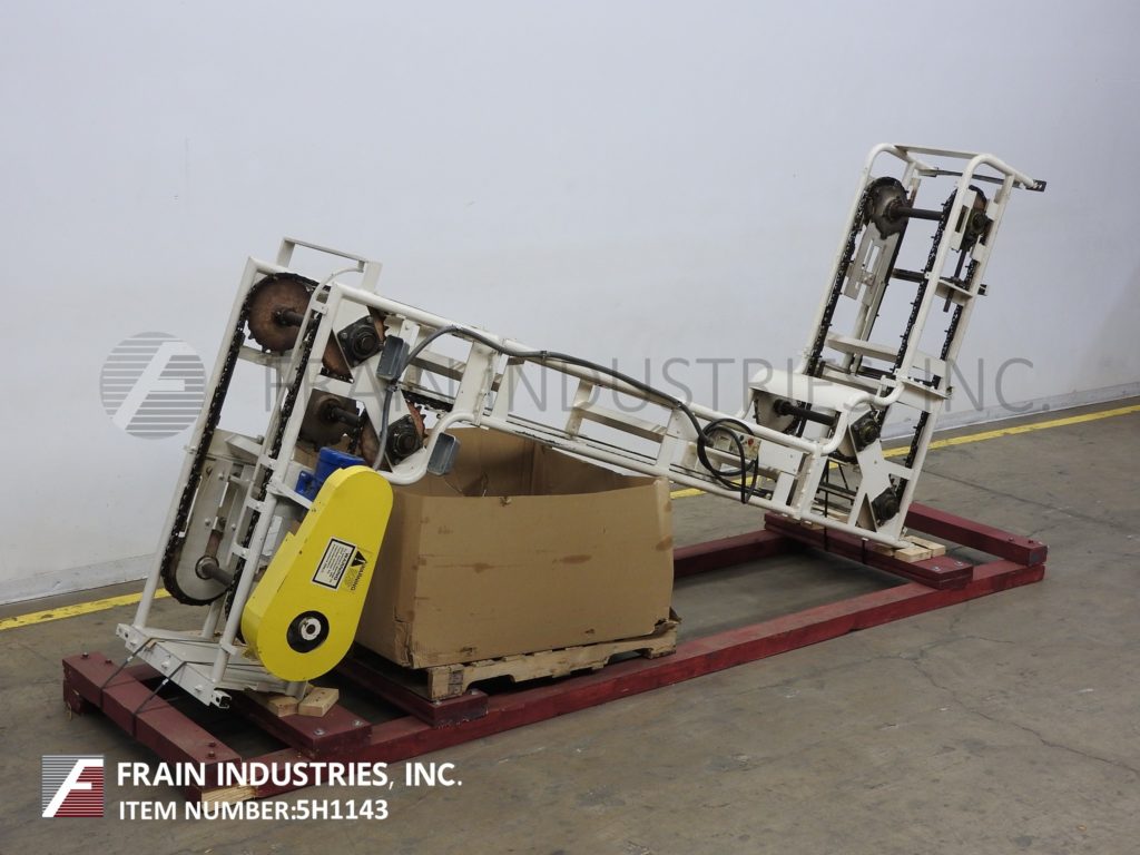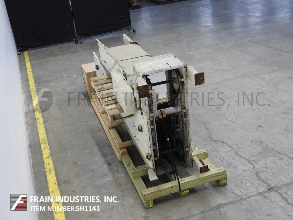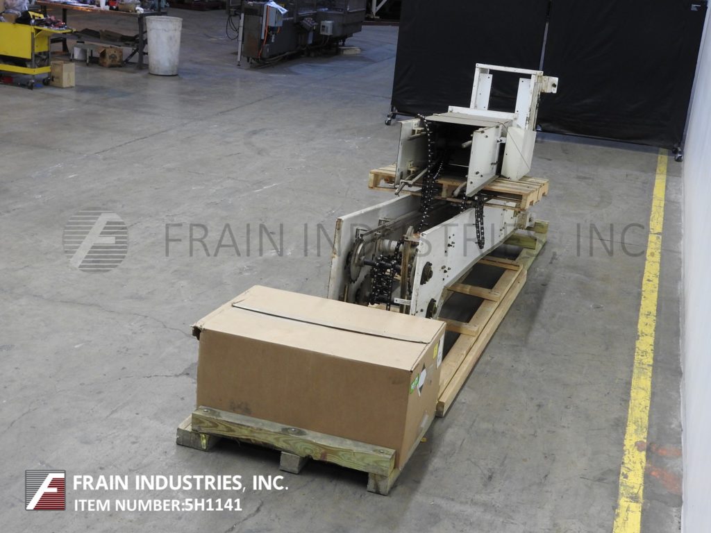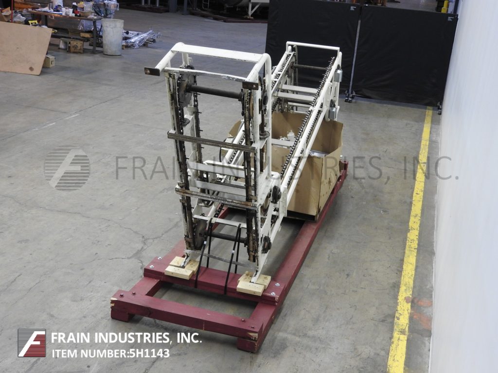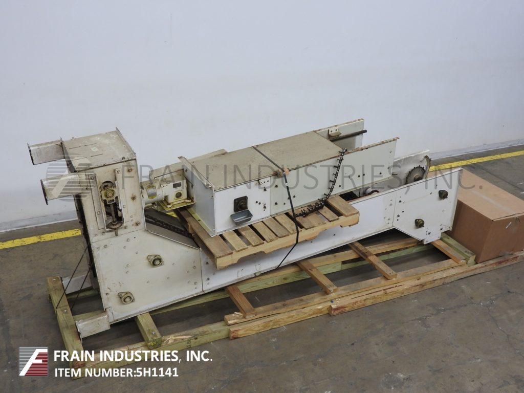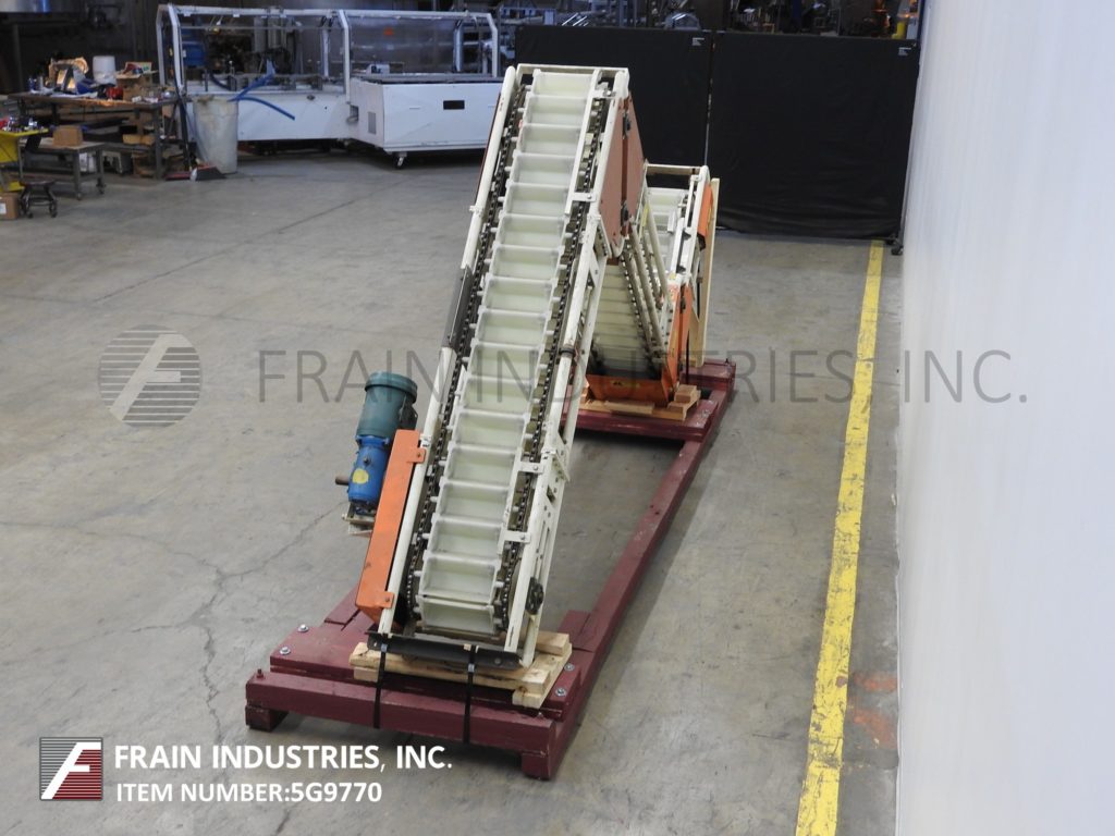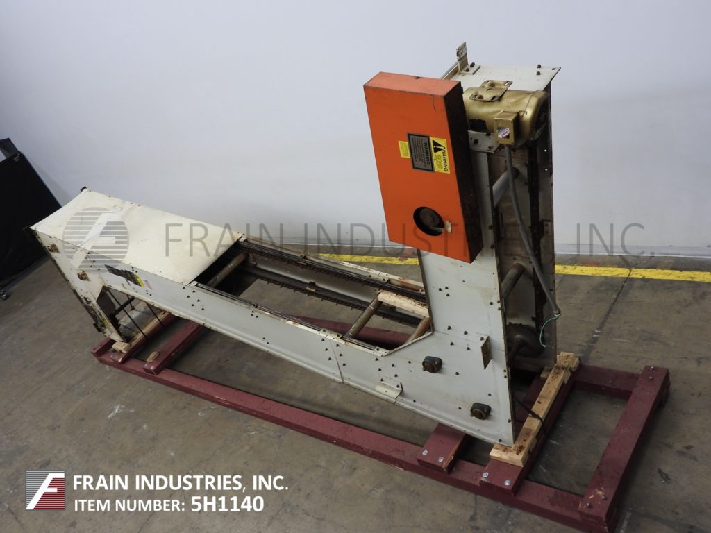 Meyer,型号PA45218S,Z样式桶电梯。每分钟产品的磅数-根据材料,应用和机器配置而定。配有白色塑料产品桶,内部尺寸为18英寸长x 5“宽x 2-3 / 4”深,具有79“长卧式楼层,饲料高度为30英寸,为182”垂直升降机,宽度为27“框架,到80“顶部水平顶部运行并具有开放式185”排放高度“。由1½HP顶部安装电机驱动器供电。
