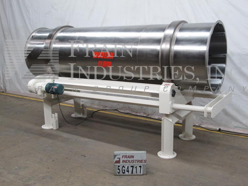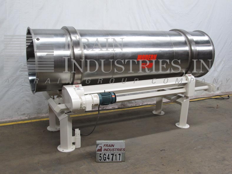 现代Flow不锈钢卧式旋转镀膜滚筒。内部尺寸:48“直径x 172”长的涂层滚筒。配备软飞行,由5马力齿轮马达驱动。鼓安装在重型碳素钢摇篮与10“直径耳轴轮。42-1/2“H地面间隙。