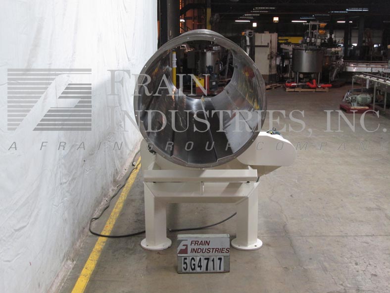 连续,S/S,圆柱形滚筒的涂层有一个36”ID x 120”L的涂层室,(4)1”H挡板,24”ID产品进料/出料与36”的地板间隙,和一个1.5马力的驱动器。安装在S/S框架上。
