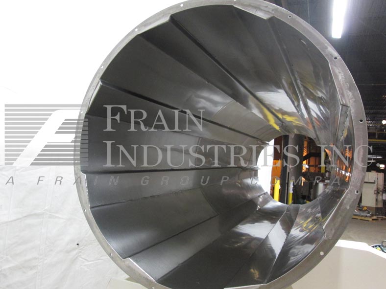 不锈钢,连续涂膜滚筒。腔尺寸:48“直径x 17 '长;36“内径;16“x 14”产品进料。固定肋内挡板。