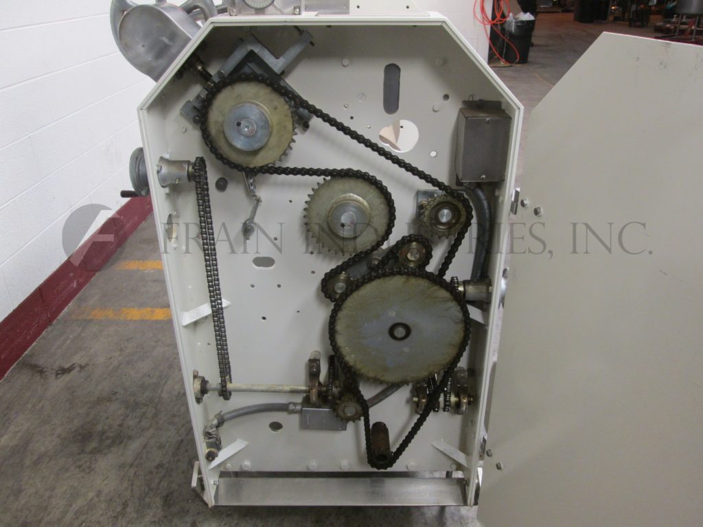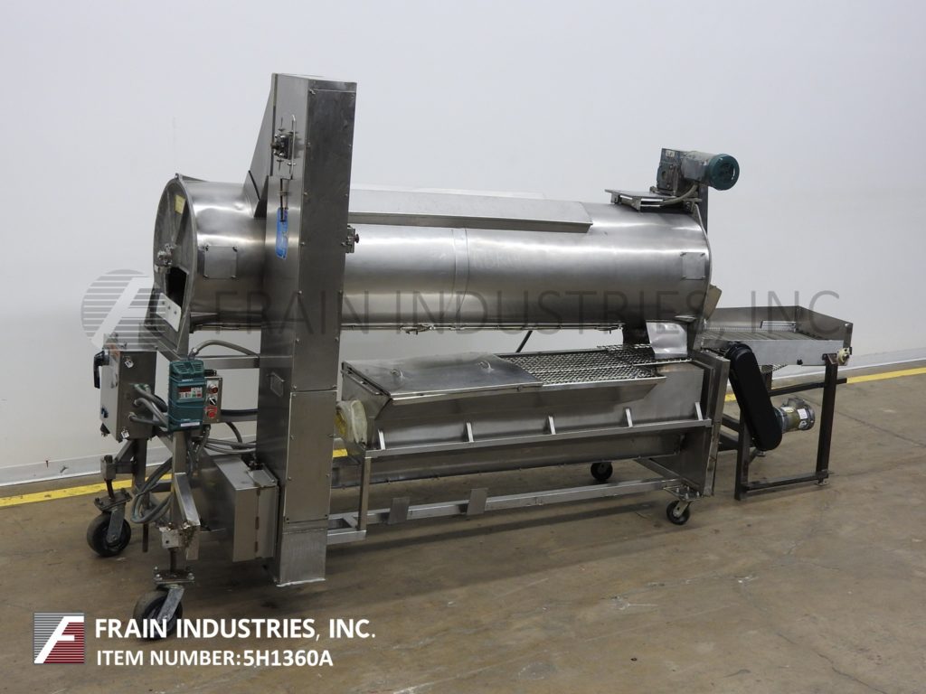 Moline型号DSM2000,连续,不锈钢,粉状,粒状或肉桂糖,用于甜甜圈涂层系统,每小时从500到2000打甜甜圈-取决于材料和应用。滚筒规格:24”ID;长度88",1"长x 1/2"宽内鼓性能和翻转打开螺栓下盖。配有36"长在饲料溜槽和24" ID卸料均有36"地板间隙,和10"外径卸料结束糖回收溜槽63"长x 16"宽x 22"深不锈钢回收糖仓翻转盖,和内/外桨以及4"外径不锈钢底部进料螺钉到80"长的倾斜楔形进料机与6"宽皮带和1-1/2"高楔形在6"中心与盖。安装在不锈钢底座上。