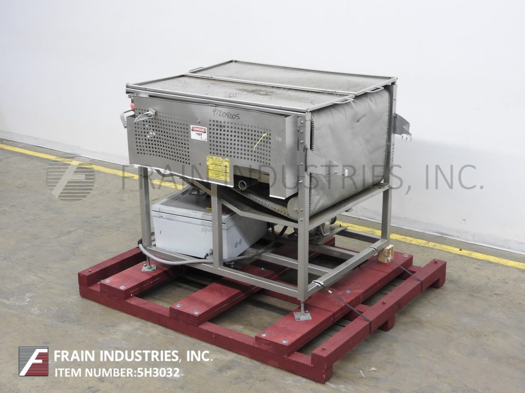 MP设备,型号CO39,无限介质过滤器。配备(2)2½”OD / 2”ID三钳式充电端口,36”宽网滤带由1 HP驱动刮刀驱动,(2)2½”OD / 2”ID三钳式排出端口和底部安装的滴盘。控制面板上有开/关开关和按钮启动/停止控制。